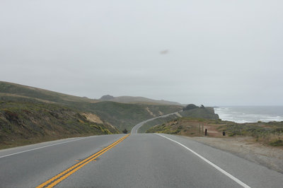 Mi azóta úgy tekintettünk rá, hogy valószínűleg ez a hideg-ködös idő lesz a meghatározó végig az 1-es út mentén (óceán mellett fut), úgyhogy ma (kedden) nem is panaszkodtunk emiatt. Egészen addig, amíg egy segítőkész helyivel nem keveredtünk beszélgetésbe az egyik autós pihenőben, aki felvilágosított minket, hogy köd csak SFben szokott lenni, ezen az úton általában napos az idő. Francba :). Úgyhogy most félreálltunk és kicsit várunk, hogy oszoljon a köd, és utána indulunk csak tovább.