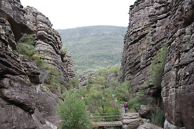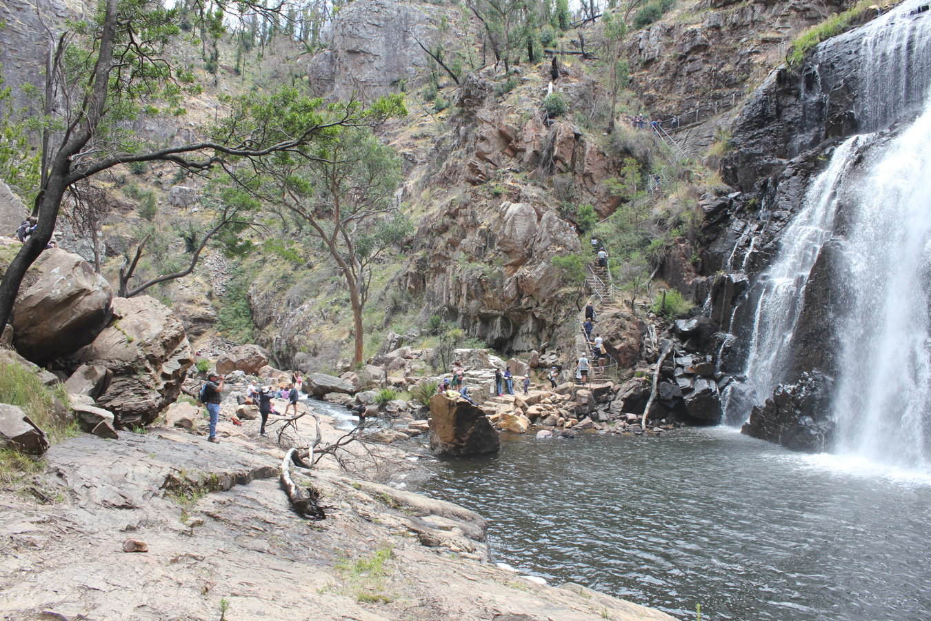 Sajnos egy 2014 januári erdőtűz rendesen megtépázta a nemzeti parkot, de ennek ellenére (vagy talán pont ezért?) megérte bejönni. A Grand Canyon nevű szakasz nagyon szép volt, egy kellemeset sétáltunk ott. Az elnevezése szokásosan ausztrálosan túlzó, azért annyira nem volt nagy, de ez talán a képeken is látszik. Láttunk azóta ennél nagyobb kanyont is amit nem is hívnak kanyonnak :). Ezt a részt nem érintette a tűz, viszont a másik fele a nemzeti parknak ahol a McKenzie vízesés volt, gyakorlatilag teljesen leégett. Éppen éledeztek már a fák (elvileg az eukaliptuszok kibírják a tüzeket), de azért elég szomorú látvány volt. Maga a vízesés szép volt, sokat pihentünk a lábánál a hűsben.