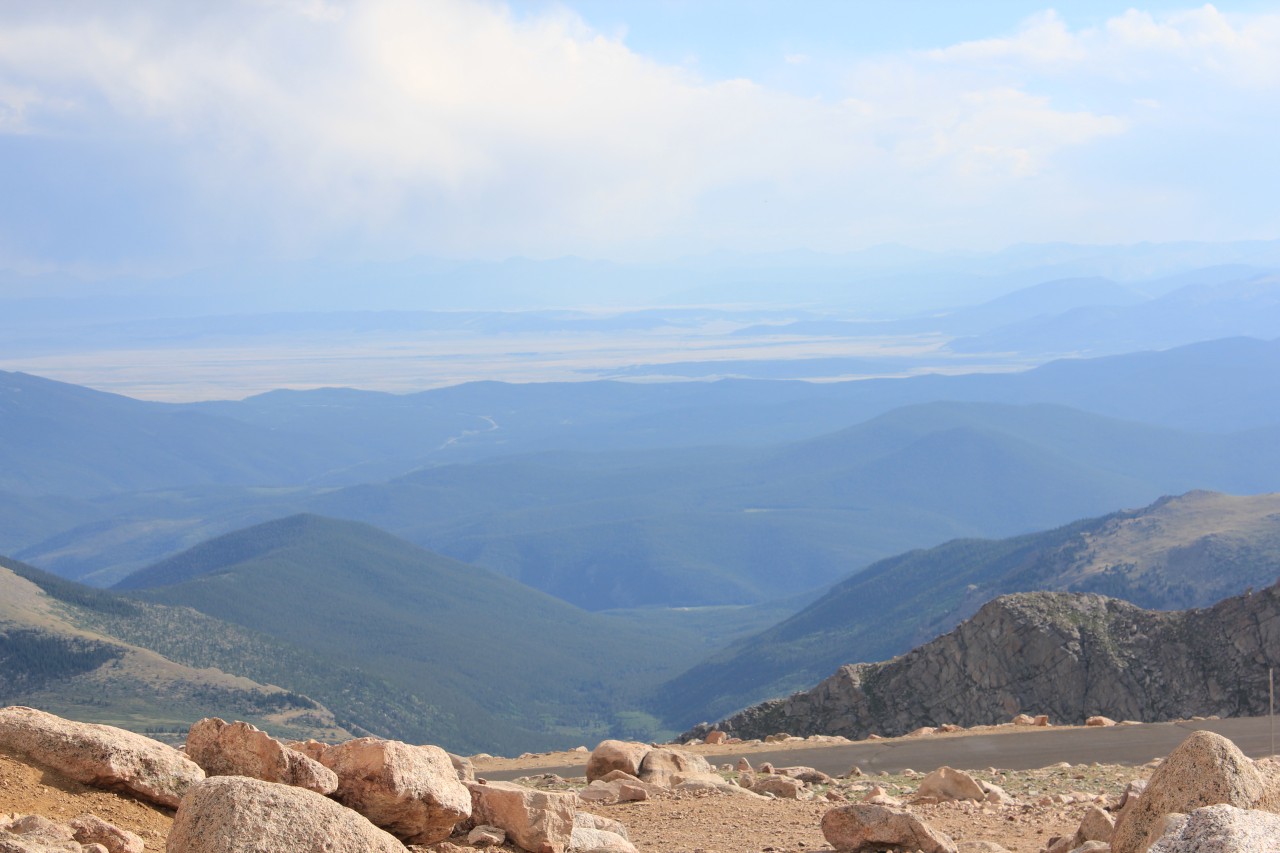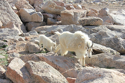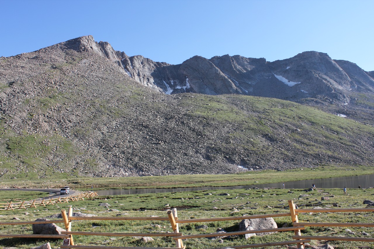 Észak Amerika legmagasabban fekvő autóútján jártunk. Az egyik 14 ezres, a Mt Evans tetejéhez építettek az 1930-as években egy utat, hogy a nagyközönség is élvezhesse a magashegyi rétek vadvirágait és élővilágát. A magasság természetesen lábban értendő, a parkoló méterben számítva 4306 méteren volt. Maga az autóút meglepően sima volt, nagy emelkedők nélkül, valahogy itt tompábbak a hegyek :), és hó sem volt már a csúcson. Kiszállva már igen rossz volt a közérzetünk, mivel röpke fél óra alatt autóztunk fel 3000 méterről. A vadvirágok viszont tényleg nagyon szépek voltak, volt többféle kék, sárga, piros és fehér virágú kis sziklakerti növény.