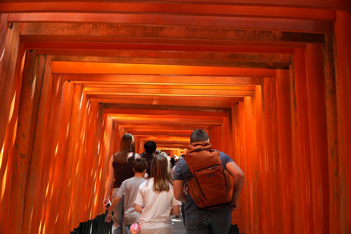 Reggel elindultunk a Fushimi Inari-ba az 1000 torii kapuhoz. Sajnos belefulladt a hely a turistákba, de azért bejártuk a piros kapukat. Szerencsére egy csomó hússütő volt a közelében, így viszonylag könnyen megoldódott az ebéd.