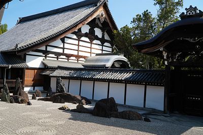 Délután továbbindultunk a Tofuku-ji templomba. Már az átsétálás is érdekes volt, egy normál kisházas lakónegyeden keltünk át. A templomnál végre nagyon kevesen voltak és nagyon szép volt. Az is érdekes volt, hogy a belépésnél a "templomba" le kellett vennie mindenkinek a cipőt, bent pedig zokniban lehetett mászkálni. Találós kérdés: bent akkor hogy lehet elmenni wc-re? (Van a wc-ben használható wc-papucs :).)