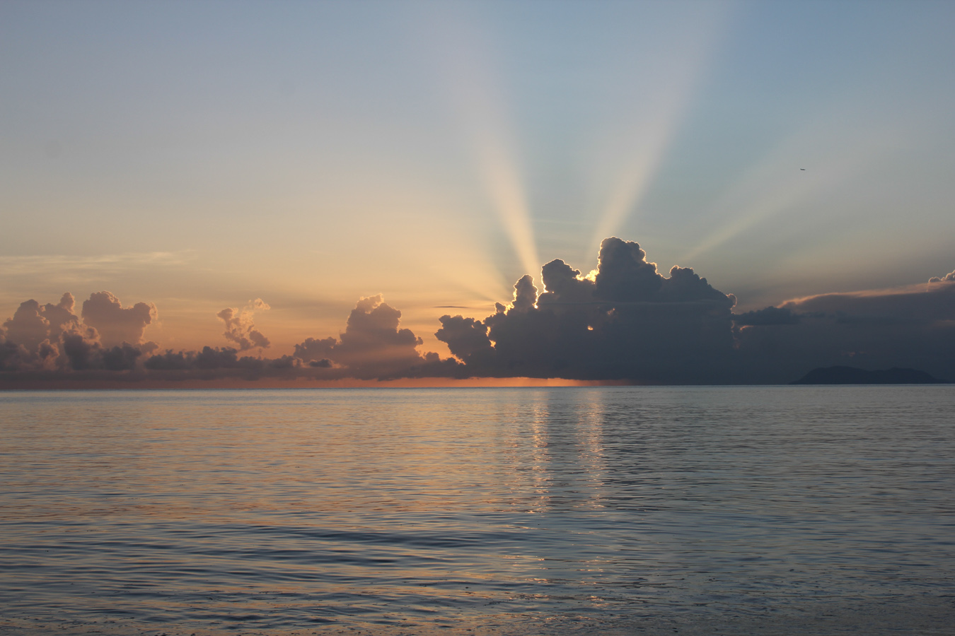 A búvárkodás után még volt egy kis időnk a “megszokott” pipás úszkálásra, majd egy rövid továbbhajózás után megálltunk a második ponton, ahol egy kb. 20 méter magas vízalatti hegy mellett sok, nagy ezüstösen szikrázó hal úszott. Volt egy nagyobb kiterjedésű korallzátony is, ami mellett hosszában úsztunk, megfigyelve a tenyérnyi halak mindennapi életét és civakodásait is. A harmadik megállónál a búvárokat “kidobtuk” hamarabb, majd a hajó beparkolt egy következő zátonyszakasz mellett. Itt volt szerencsénk bébicápákat látni, teknőssel úszni és együtt levegőzni a vífelszínen és megszámlálhatatlan mennyiségű kis és nagytestű halat látni. Kati még látott egy csapat kisujjméretű halat, akik kiugorva a vízből menekültek valami elől. Iszonyatosan élveztük a vízfelszínen úszkálást, különösképpen, hogy ilyen meleg és tiszta volt a víz. Épp amikor már teljesen elköszöntünk a zátonytól és úsztunk a hajóhoz, hátulról érkezve elhúzott 15 centivel a hasunk alattunk egy jó erős méteres Napóleon hal. Kicsit betojtunk :). Aztán kiderült, hogy barátságos hal, szokták is etetni ha előkerül.