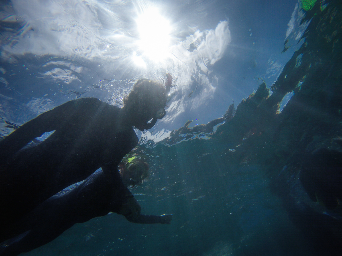 Második sznorkelezős túrán a nagy hajót kicsire cseréltük. Egy 25 fős 500 lóerős motorcsónakkal mentünk ki a Hook szigethez sznorkelezni, sajnos a sok esőzés és a magas árapály miatt nem volt tökéletes a víz tisztasága. Ilyenkor kell neki egy 3-4 nap, mire kitisztul. Ennek ellenére megint láttunk teknőst, nagy halakat is, illetve rengeteg apró színes halat és korallt. Szerencsére nem voltak medúzák, jobban élveztük mint a Lady Musgrave lagúnában. A víz alatti felvételeket Will készítette, aki útközben is szórakoztatott minket. Pont olyan, ahogy a kép alapján elképzelitek, legyen elég annyi, hogy az ‘I need a dollar’ című számmal indította a hajón a zenét.