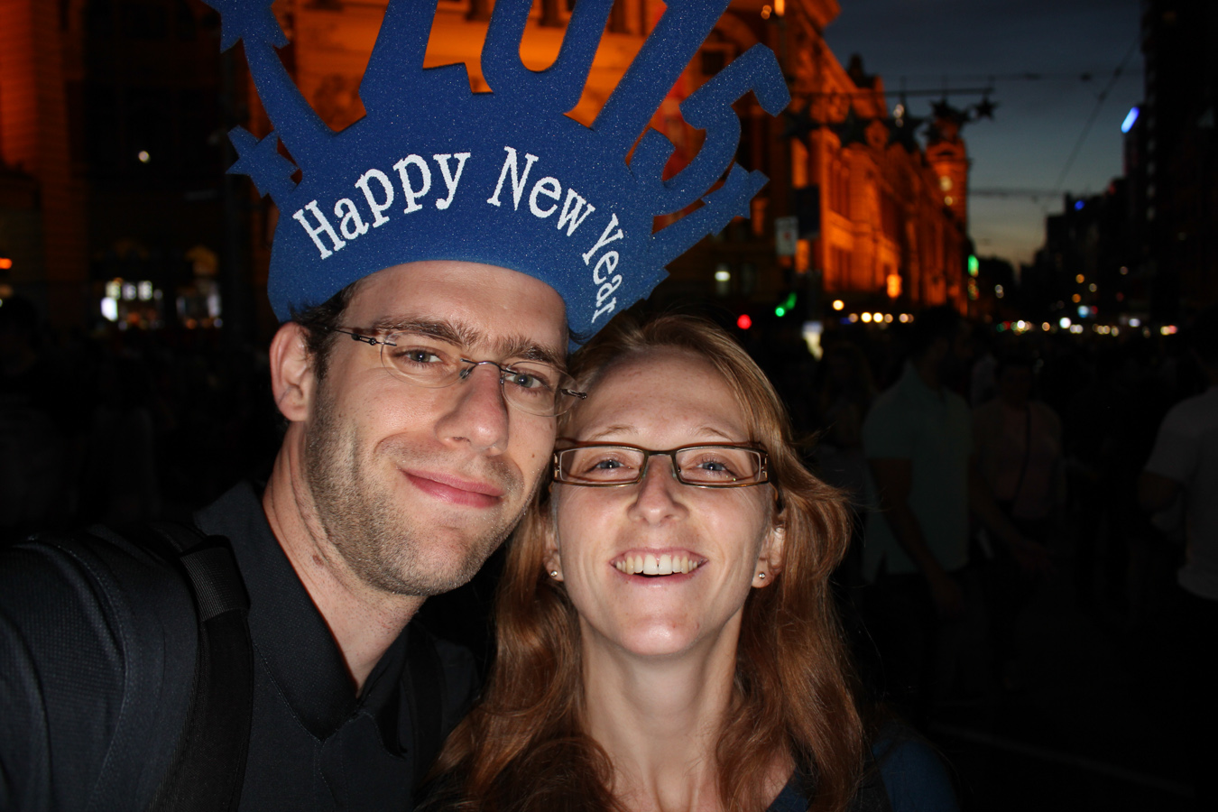 A szilvesztert főleg gyaloglással töltöttük :). Egy idő után már kezdtük unni és gondoltuk, hogy beülünk valahova egy italra (az utcán tilos volt az alkohol fogyasztás). Ez viszont némi nehézségbe ütközött mert a helyek nagy részén privát illetve egész-estés-belépős partik voltak. Így ezt a projektet feladtuk és folytattuk a gyaloglást. Végül a Yarra folyó partján középtájban állapodtunk meg. A tűzijáték egész jó volt, mondjuk messze nem olyan látványos mint Sydneyben. Több ház tetejéről lőtték egyszerre, mi vagy 8-at is láttunk, valószínűleg volt több is. Mindenütt ugyanaz volt a program, így nagyjából mindegy volt melyiket látja az ember. Annyiban jó volt a helyünk, hogy volt párszor szinte nappali világosság a sok párhuzamos robbanás miatt.
