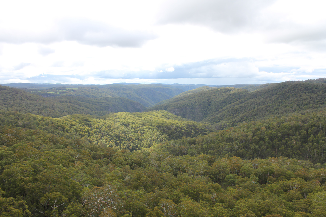 Másnap visszatértünk a ködös kilátónkhoz, ahonnan mostmár láttuk is a környéket! Innen indult egy sétaút az esőerdőn át, amely több kisebb vízesést is érintett. Maga az út volt igazán érdekes, mert a Dorrigo Nemzeti Park területén haladt, amely a világörökség részét képezi. Séta után tettünk egy második kört Bellingenben is, majd elindultunk tovább a part fele.
