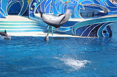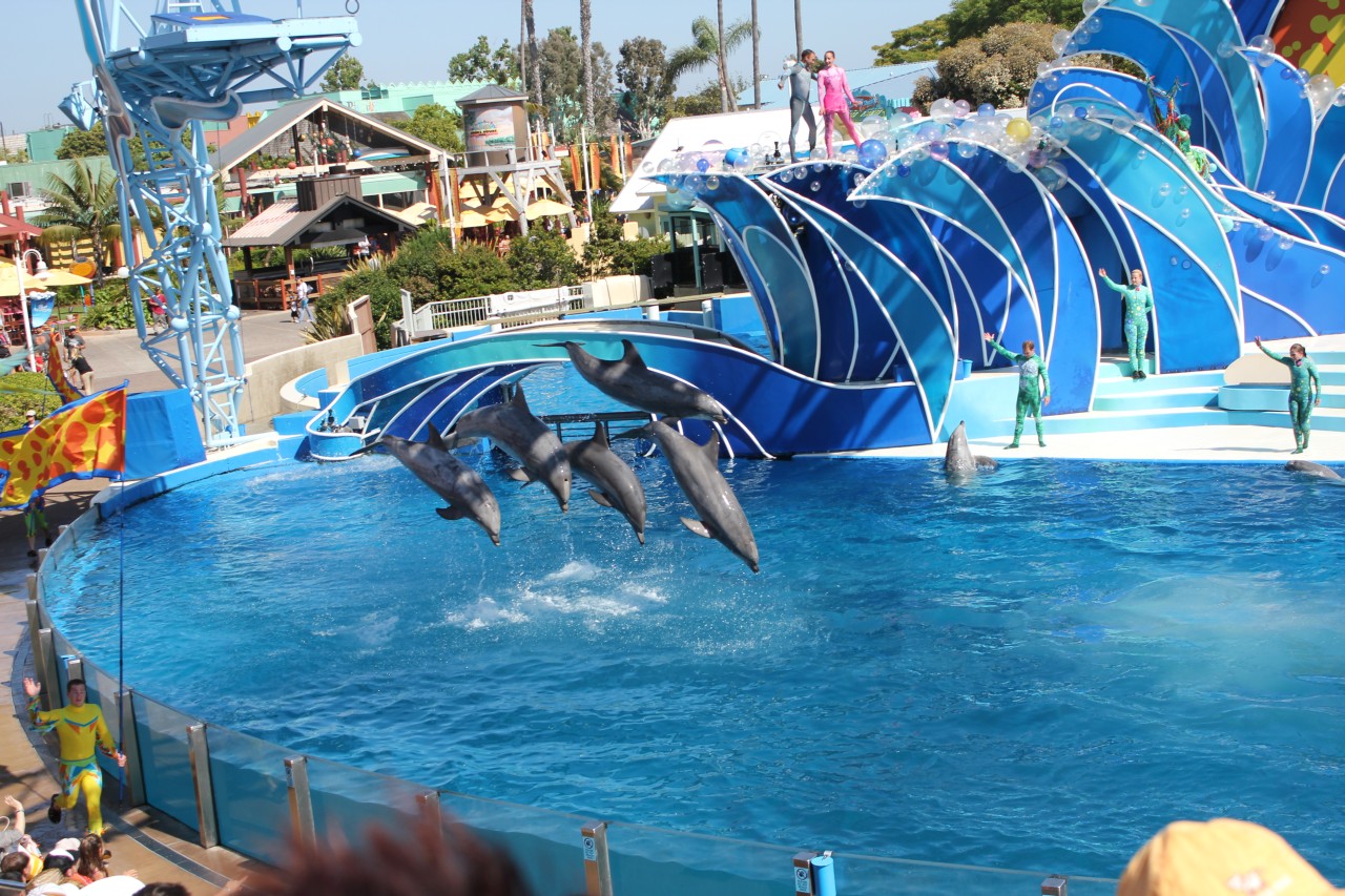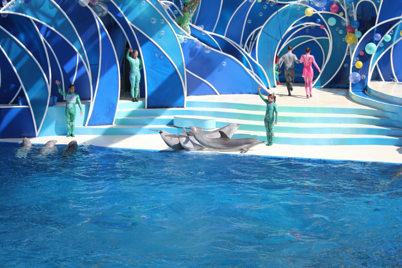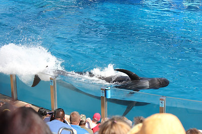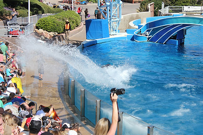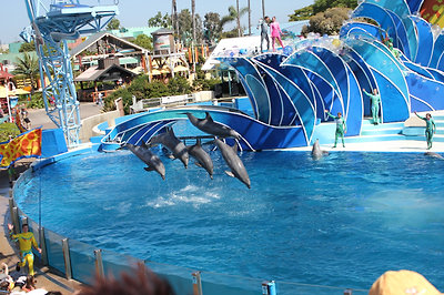 Már indulás előtt megvettük a jegyeket a SeaWorldbe, így már nagyon vártuk. Igazából ez egy vidámparkkal fűszerezett állatkert, ahol a tengeri állatokra szakosodtak. Van nekik legalább 4 orkájuk, számtalan palackorrú delfinük, 2 rövidszárnyú gömbölyűfejű-delfinük, amik fel is lépnek (ugranak és fröcskölnek, ennyi a szerepük) – ez egyedülálló a világon. A delfinek közül csak néhányan lépnek fel, a többiek a delfinsimogatóban úszkálnak, vagy a külön fizetős “találkozás a delfinekkel” programban örvendeztetik a magamfajta delfinimádókat. Igen, jól olvastátok, volt delfinsimogató!