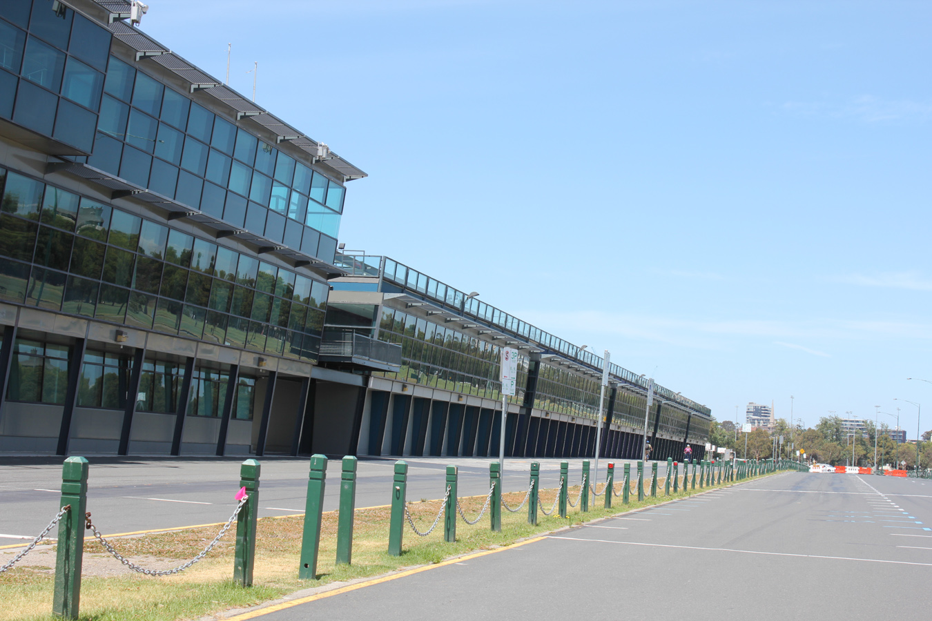 Nagyon közel laktunk az F1-es pályához, úgyhogy egyik délután be is hajtottunk rá! Maga a pálya gyakorlatilag bent van a városban (a központtól max 5 kmre légvonalban, de talán még annyi sincs). Szépen el is van rejtve, ilyenkor egy közpark formáját veszi fel, nem volt könnyű észrevenni, hogy már tényleg a pályán autózunk :). A legfurcsább az volt, hogy igen szűk még így személyautóval is, nemhogy az F1-es autókkal (olyan három sáv széles az egész).