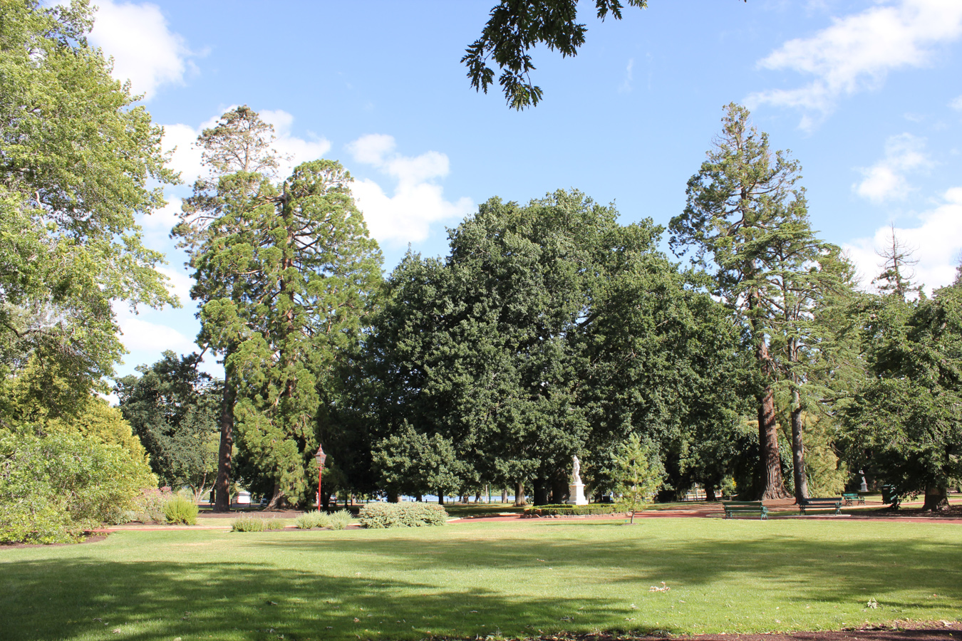 Szerencsére a közparkot (amelyből mára botanikus kert lett) is elkezdték telepíteni, így több más óriás fa mellett van egy helyütt majd 150 éves fákból álló kaliforniai redwood fasor, több óriási példánnyal, ami nekünk nagyon imponált, főleg az amerikai élmények után.