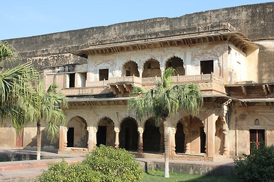 Deeg városa már egy másik államban található, Rajastanban, az áthajtásnál adót kellett fizetnünk a kocsi után :). Egyébként egy kész harc volt, hogy egyáltalán elhozzanak minket ide, folyamatosan azt karattyolta a sofőr, hogy nem lesz jó, mert 5 előtt nem érünk ide és akkor nem engednek majd be, szóval menjünk egyenesen Agrába. Ehhez képest persze 3 után nem sokkal csak ideértünk, az autót mondjuk mi navigáltuk a telefonommal.
