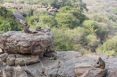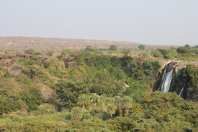 Megpróbáltunk lejutni a vízesés aljához, a medence partjára, de sajnos egy őr állta utunkat. A nagydumás munkatársainknak sem sikerült meggyőzni arról, hogy márpedig mi oda akarunk menni és engedjen elindulni az ösvényen. Állítólag a vízesés medencéjében krokodilok élnek, de erről nem tudtunk meggyőződni. Arról viszont igen, hogy a kilátónál sok majom él. Nem nagyon zavartatták magukat a fehér turisták láttán, teljes nyugalommal folytatták a henyélést és tetvészést a kamerák előtt is.