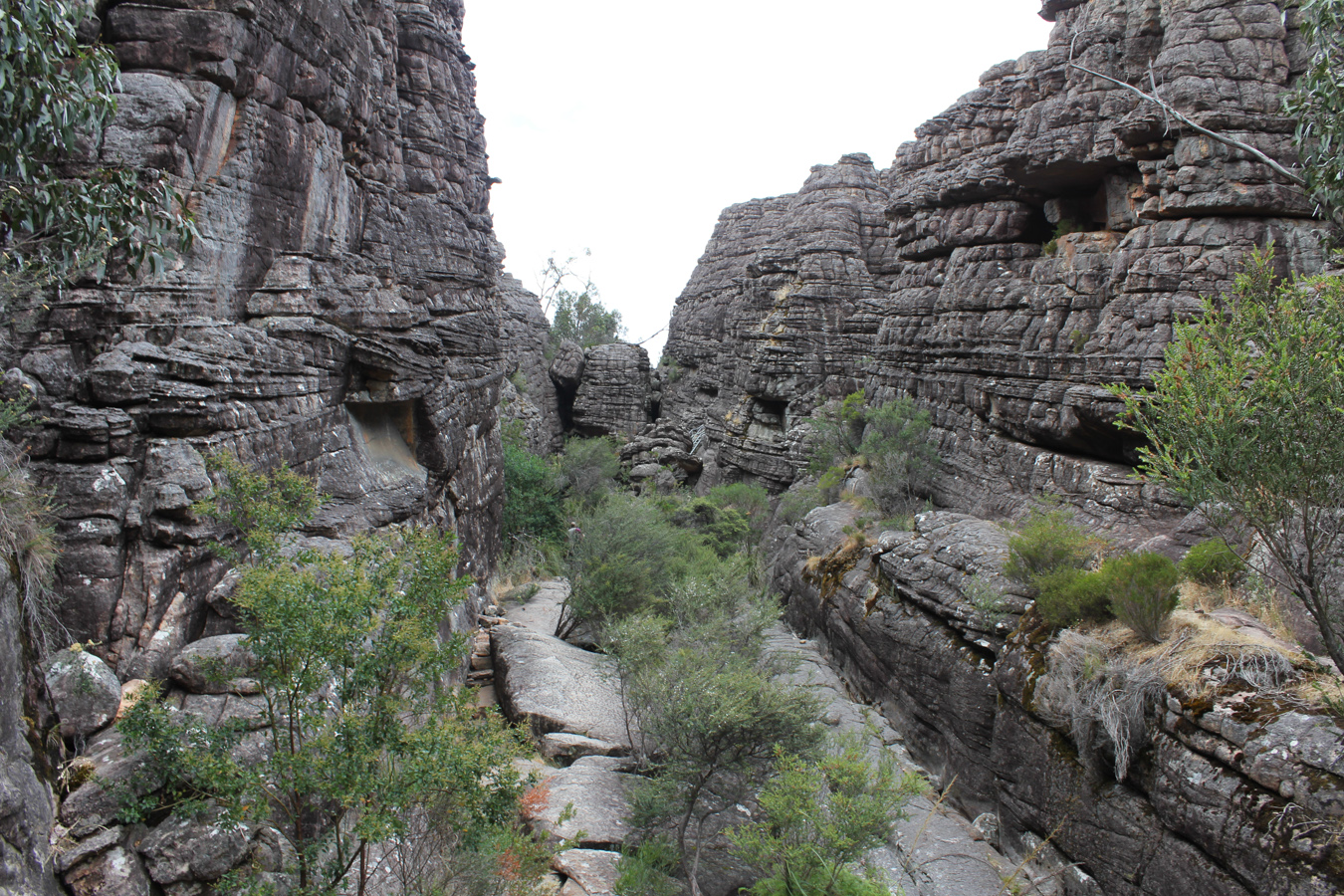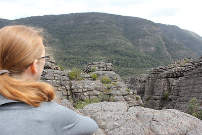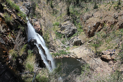 Sajnos egy 2014 januári erdőtűz rendesen megtépázta a nemzeti parkot, de ennek ellenére (vagy talán pont ezért?) megérte bejönni. A Grand Canyon nevű szakasz nagyon szép volt, egy kellemeset sétáltunk ott. Az elnevezése szokásosan ausztrálosan túlzó, azért annyira nem volt nagy, de ez talán a képeken is látszik. Láttunk azóta ennél nagyobb kanyont is amit nem is hívnak kanyonnak :). Ezt a részt nem érintette a tűz, viszont a másik fele a nemzeti parknak ahol a McKenzie vízesés volt, gyakorlatilag teljesen leégett. Éppen éledeztek már a fák (elvileg az eukaliptuszok kibírják a tüzeket), de azért elég szomorú látvány volt. Maga a vízesés szép volt, sokat pihentünk a lábánál a hűsben.