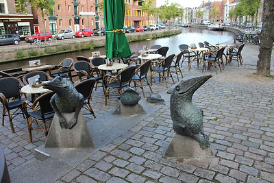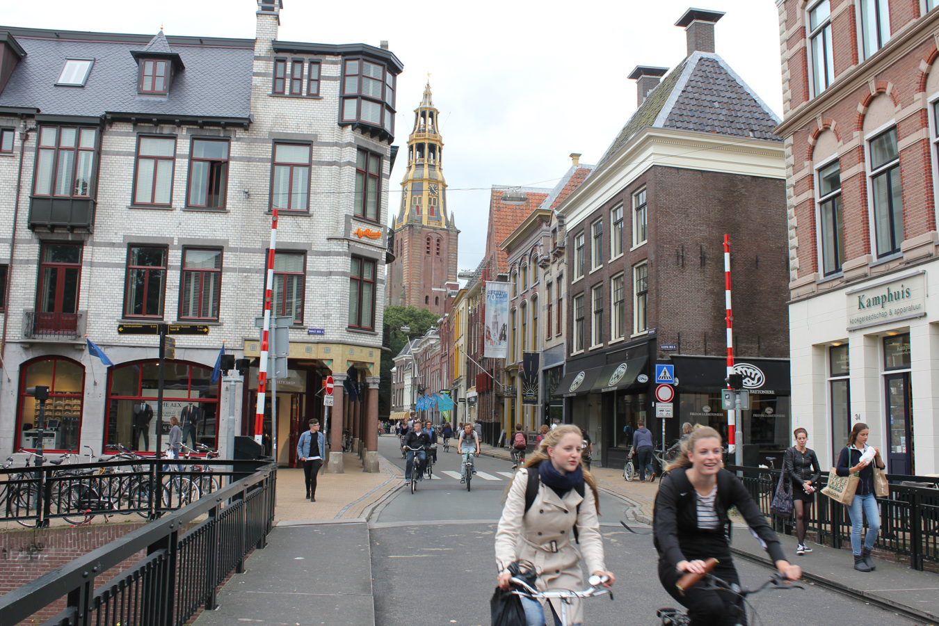 A túra extra programja a kis hollandiai körünk volt. Groningen egy északi, a turistás részektől távoli kis egyetemi város. Jóra számítottunk, de még annál is jobban tetszett. Pont elkaptuk kedden a piacot, ami dugig volt egyetemistákkal és igen jó áron lehetett mindent kapni. Vásároltunk is egy csomó sajtot, füstölt halat, zöldségeket és érett ananászt. A német szállásokhoz képest most kétszeres áron szálltunk meg, így volt rendes konyhánk, úgyhogy rendes leülős vacsit tartottunk :). Ja igen, az árért cserébe az egyik belső csatornára volt kilátásunk!