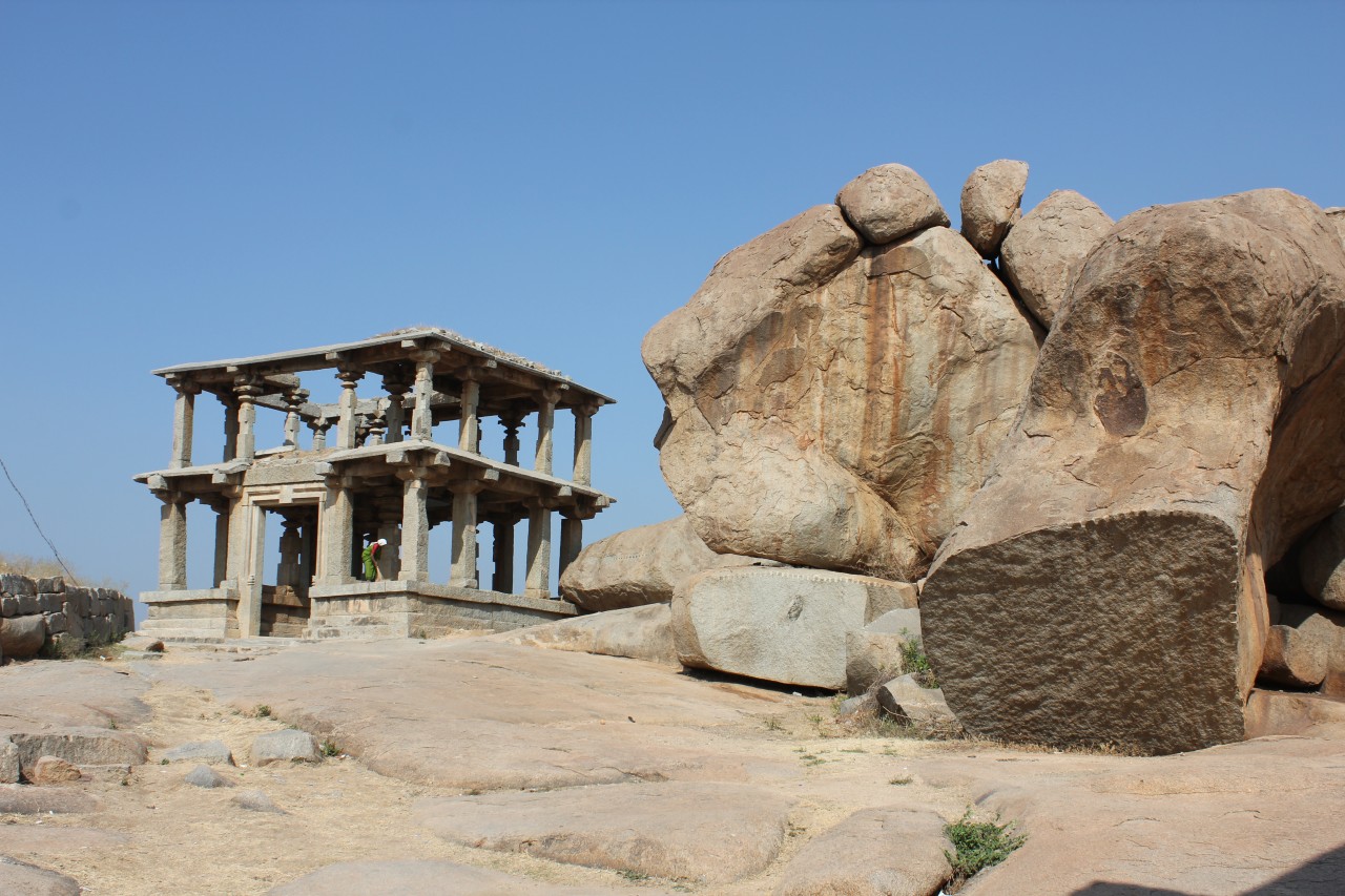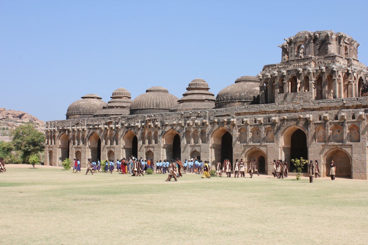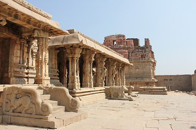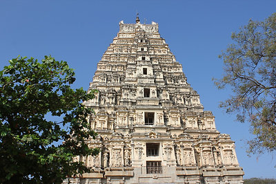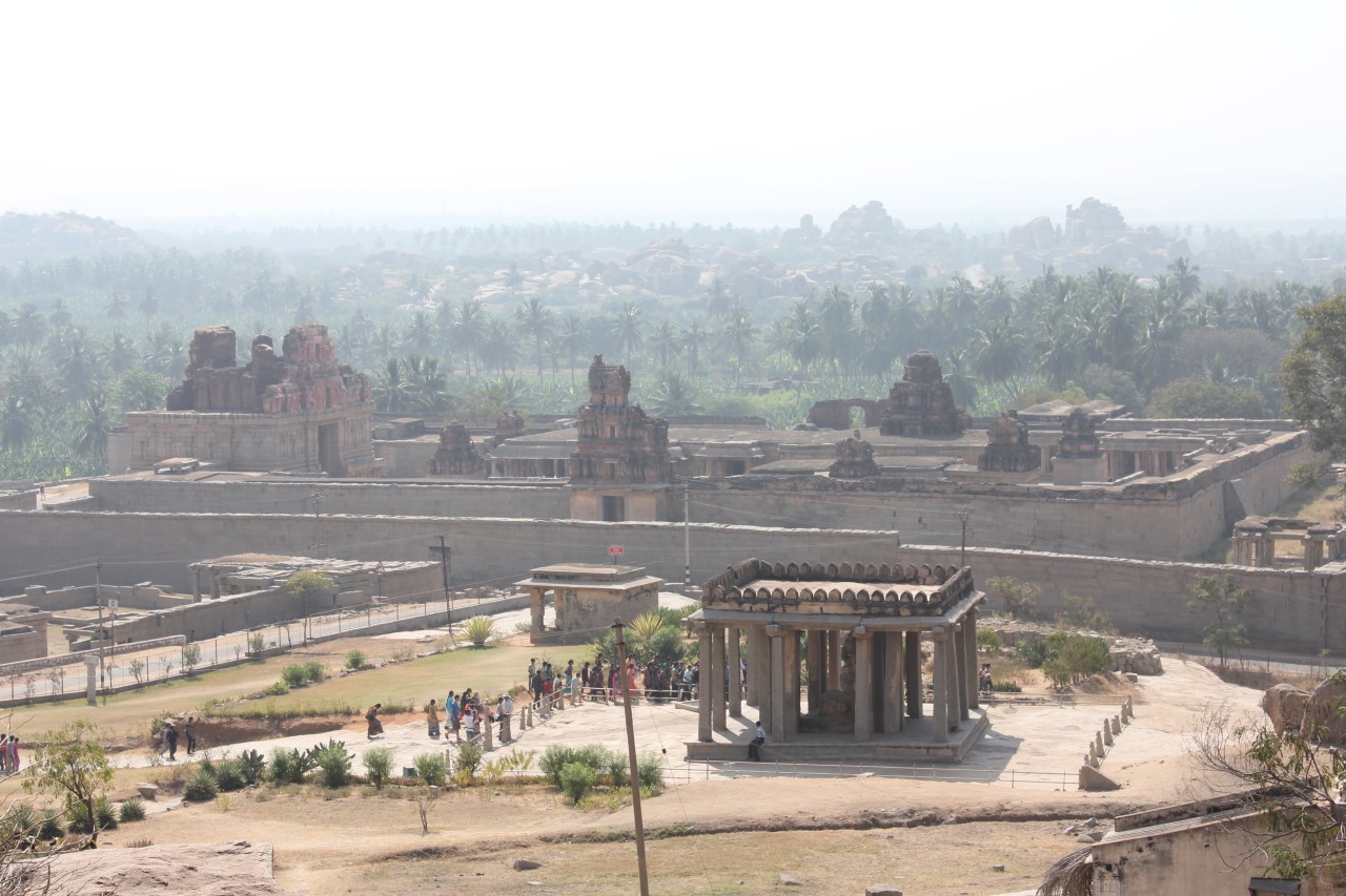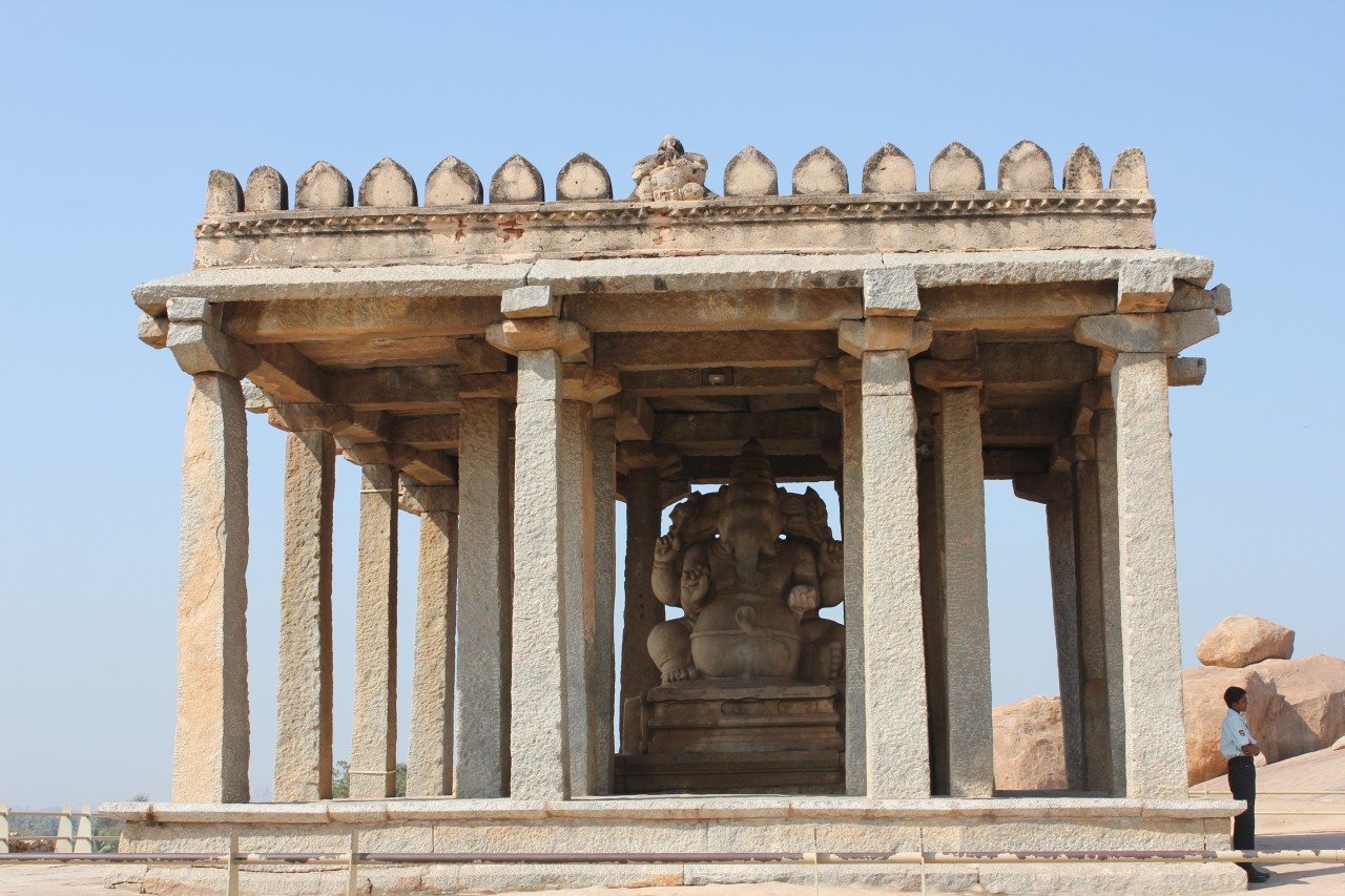 Gyors reggeli (egy banánturmix) után a Virupaksha templomnál folytattuk a nézelődést. Itt le kellett venni a cipőt, így jól jött a direkt erre a célra hozott plusz zokni. A templomban rengeteg majom lakik, akiket naponta háromszor etetnek 10-10 kg rizzsel. A majmok nem voltak túl szimpik, főleg azután nem, hogy az egyik rám ugrott hátulról, majd elcsórta a fejemről sapkámat. Szerencsére nem ment messzire vele, csócsált rajta egyet majd miután az őrök megijesztették ledobta a földre. Azért biztos ami tuti jól befújtam alkoholos fertőtlenítővel.