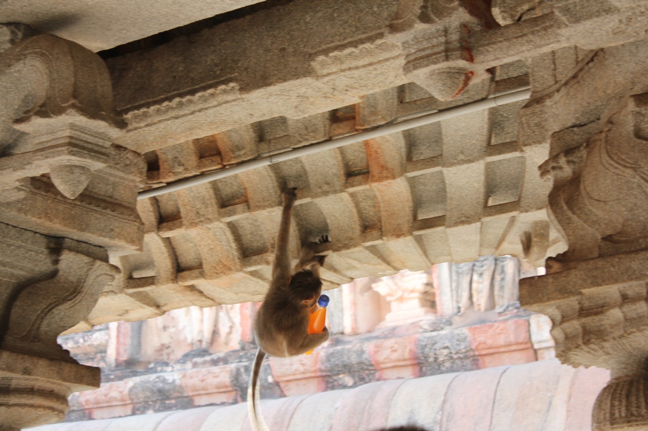 Nem csak én jártam ilyen szerencsétlenül, valakinek a Fantáját lopta el egy majom, majd miután felugrott vele a tetőre egyszer csak arra lettem figyelmes, hogy valami narancssárga folyik végig az ereszen, majd csöpög a padlóra. A jelek szerint sikerült kibontani a palackot (sajnos nem láttuk, hogy vajon emberiesen lecsavarta a kupakot, vagy hogy csinálta), ami elfolyt azt sem veszett kárba, még a padlóról is felnyalta a zsákmányt. Amúgy elég undorító volt a sok majom, mert a napi szükségleteiket és a fajuk fennmaradásához szükséges tevékenységet is ott végezték a templom udvarán.