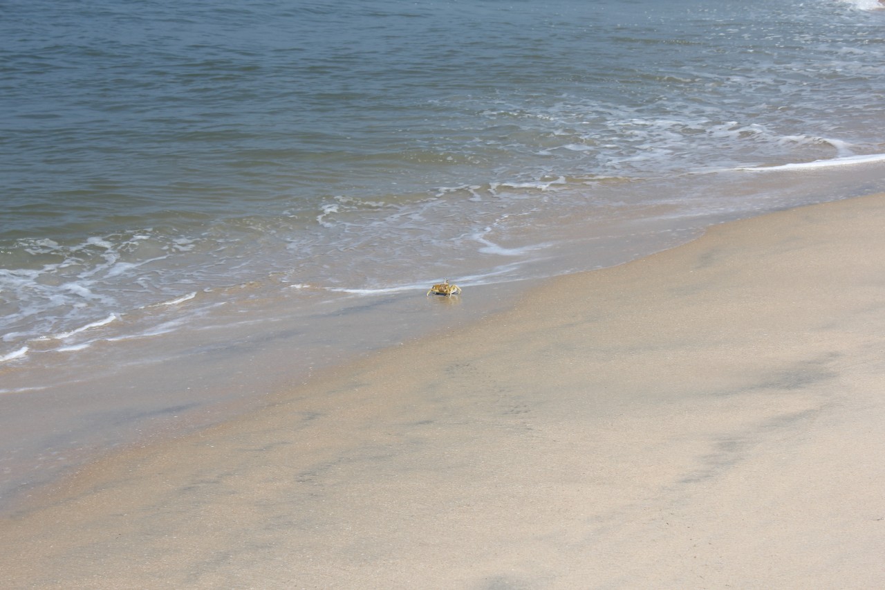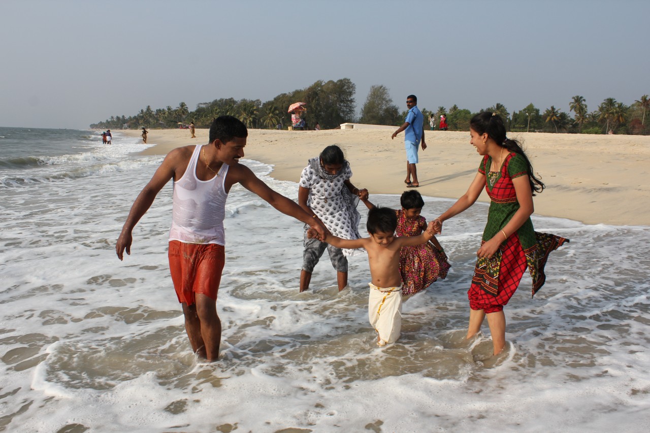 A képek egy része már nem az aleppey-i strandon készült, hanem kicsit északabbra a Marari beachen. Miután ez kint volt a városias részből, itt már szinte csak a halászok voltak a lézengő fehér turistákon kívül. Nagyon durván nyugis volt, ami nekünk tetszett. Nem az a tipikus olasz tengerpart, ahol egymás szájában fekszenek az emberek :). Ha turistával nem is, de rákkal tele volt a tengerpart. Mindegyiknek volt egy apró lukja a parton és onnan jártak ki a vízbe vadászni és hullámlovagolni.