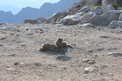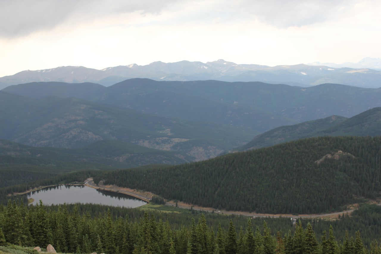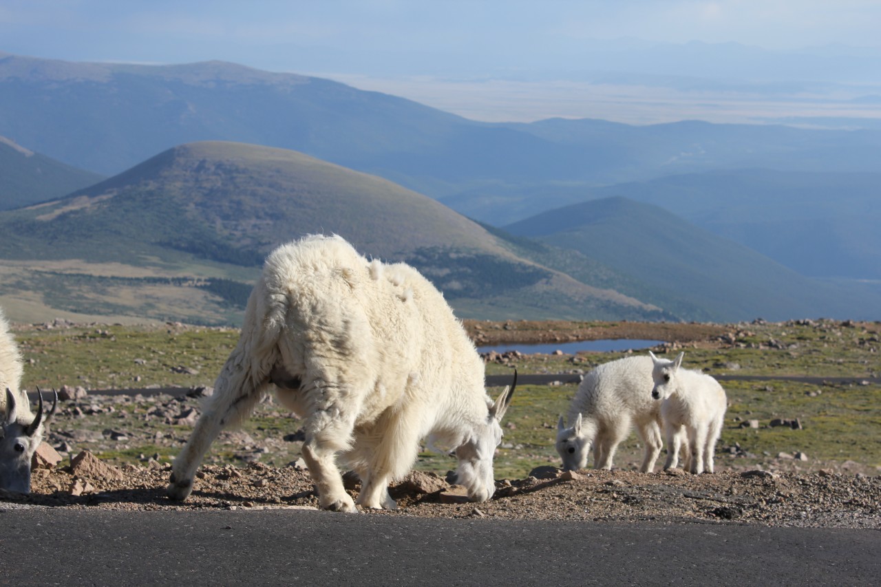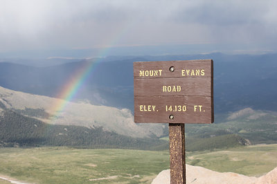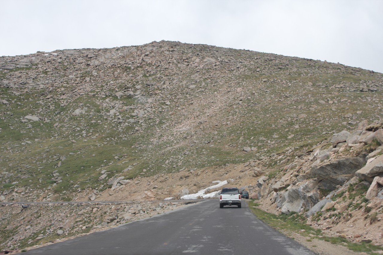 Észak Amerika legmagasabban fekvő autóútján jártunk. Az egyik 14 ezres, a Mt Evans tetejéhez építettek az 1930-as években egy utat, hogy a nagyközönség is élvezhesse a magashegyi rétek vadvirágait és élővilágát. A magasság természetesen lábban értendő, a parkoló méterben számítva 4306 méteren volt. Maga az autóút meglepően sima volt, nagy emelkedők nélkül, valahogy itt tompábbak a hegyek :), és hó sem volt már a csúcson. Kiszállva már igen rossz volt a közérzetünk, mivel röpke fél óra alatt autóztunk fel 3000 méterről. A vadvirágok viszont tényleg nagyon szépek voltak, volt többféle kék, sárga, piros és fehér virágú kis sziklakerti növény.