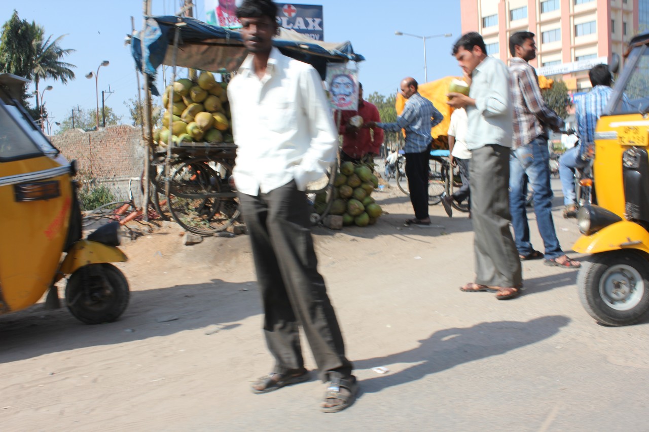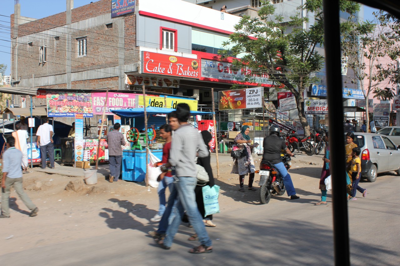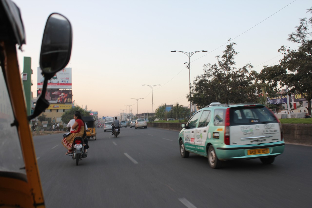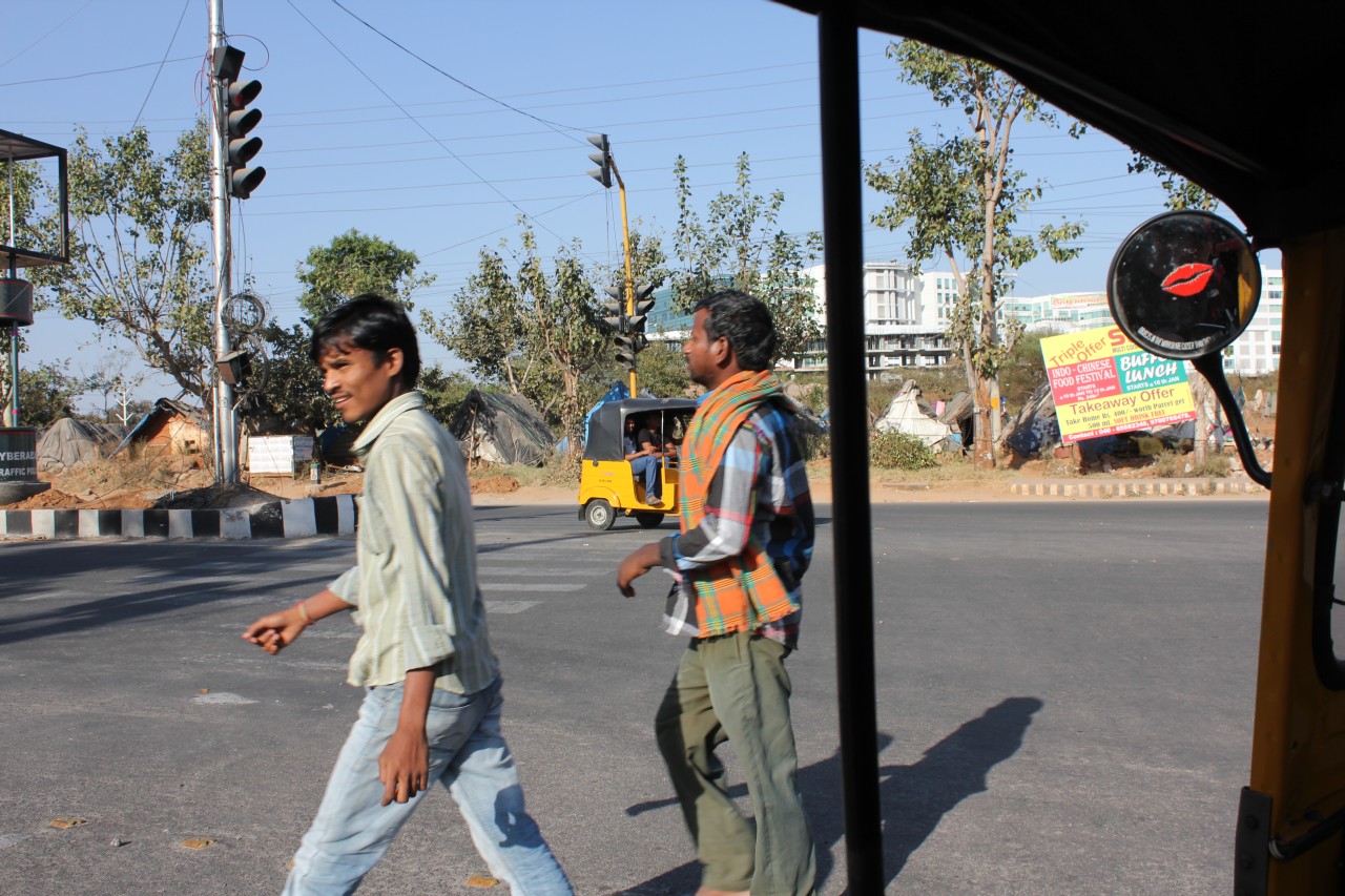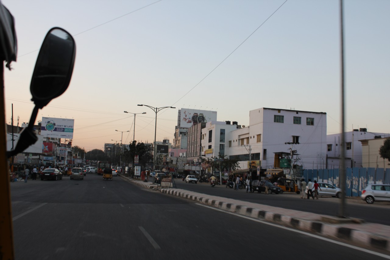 Nem volt semmi ez a kiruccanás! Most láttuk először, hogy hol is van a hotelünk – hát egy épülő negyedben, a környéken szinte mindenhol építkeznek. Kicsit odébb a Microsoftnak vannak óriási épületei, mellette szintén kapuval és őrbódéval lezárt villanegyed. Miután felküzdötte magát a tuktuk a felüljárón, beértünk egy kicsit lakottabb részre, ahol már voltak az úton és árultak mindenfélét az út szélén – gyümölcsöt főleg. A tuktukozást nagyon élveztük: fúj a szél, hangos a motor, néha dudálnak de azért viszonylag kényelmes 2 főre.