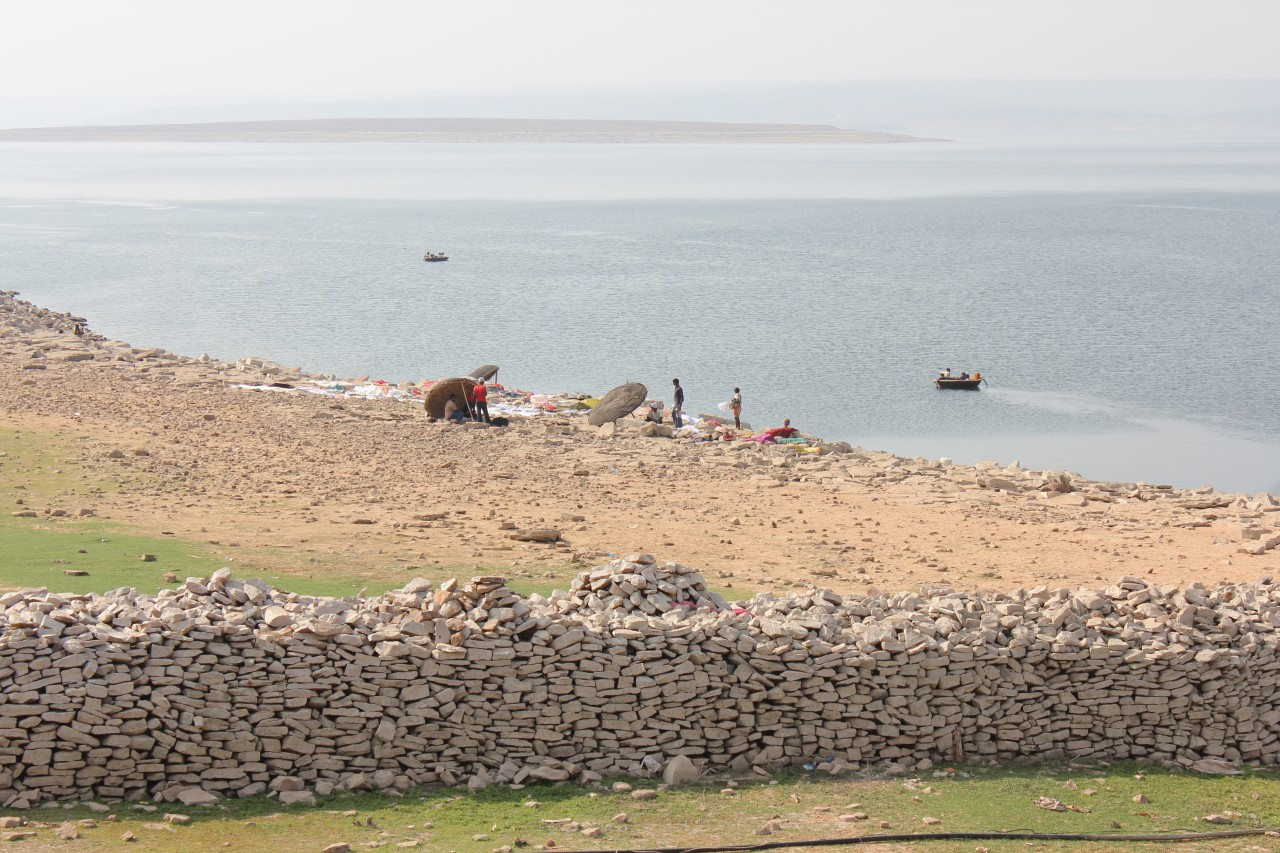 A vízparton egy ember mosott, szép ütemet adott ahogy ütötte a nagy adag fehér anyagot a kövekhez. Mire megjártuk a szigetet, már rengeteg színes anyag száradt a köveken.