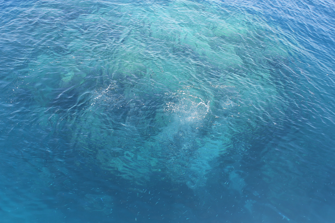 A búvárkodás után még volt egy kis időnk a “megszokott” pipás úszkálásra, majd egy rövid továbbhajózás után megálltunk a második ponton, ahol egy kb. 20 méter magas vízalatti hegy mellett sok, nagy ezüstösen szikrázó hal úszott. Volt egy nagyobb kiterjedésű korallzátony is, ami mellett hosszában úsztunk, megfigyelve a tenyérnyi halak mindennapi életét és civakodásait is. A harmadik megállónál a búvárokat “kidobtuk” hamarabb, majd a hajó beparkolt egy következő zátonyszakasz mellett. Itt volt szerencsénk bébicápákat látni, teknőssel úszni és együtt levegőzni a vífelszínen és megszámlálhatatlan mennyiségű kis és nagytestű halat látni. Kati még látott egy csapat kisujjméretű halat, akik kiugorva a vízből menekültek valami elől. Iszonyatosan élveztük a vízfelszínen úszkálást, különösképpen, hogy ilyen meleg és tiszta volt a víz. Épp amikor már teljesen elköszöntünk a zátonytól és úsztunk a hajóhoz, hátulról érkezve elhúzott 15 centivel a hasunk alattunk egy jó erős méteres Napóleon hal. Kicsit betojtunk :). Aztán kiderült, hogy barátságos hal, szokták is etetni ha előkerül.