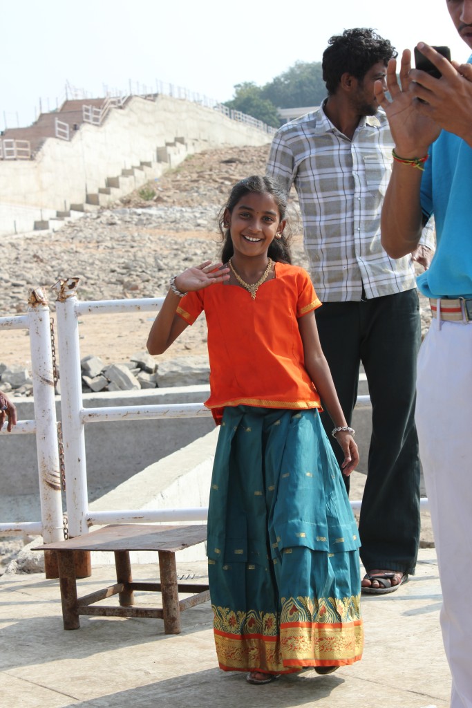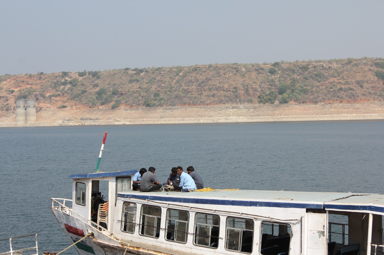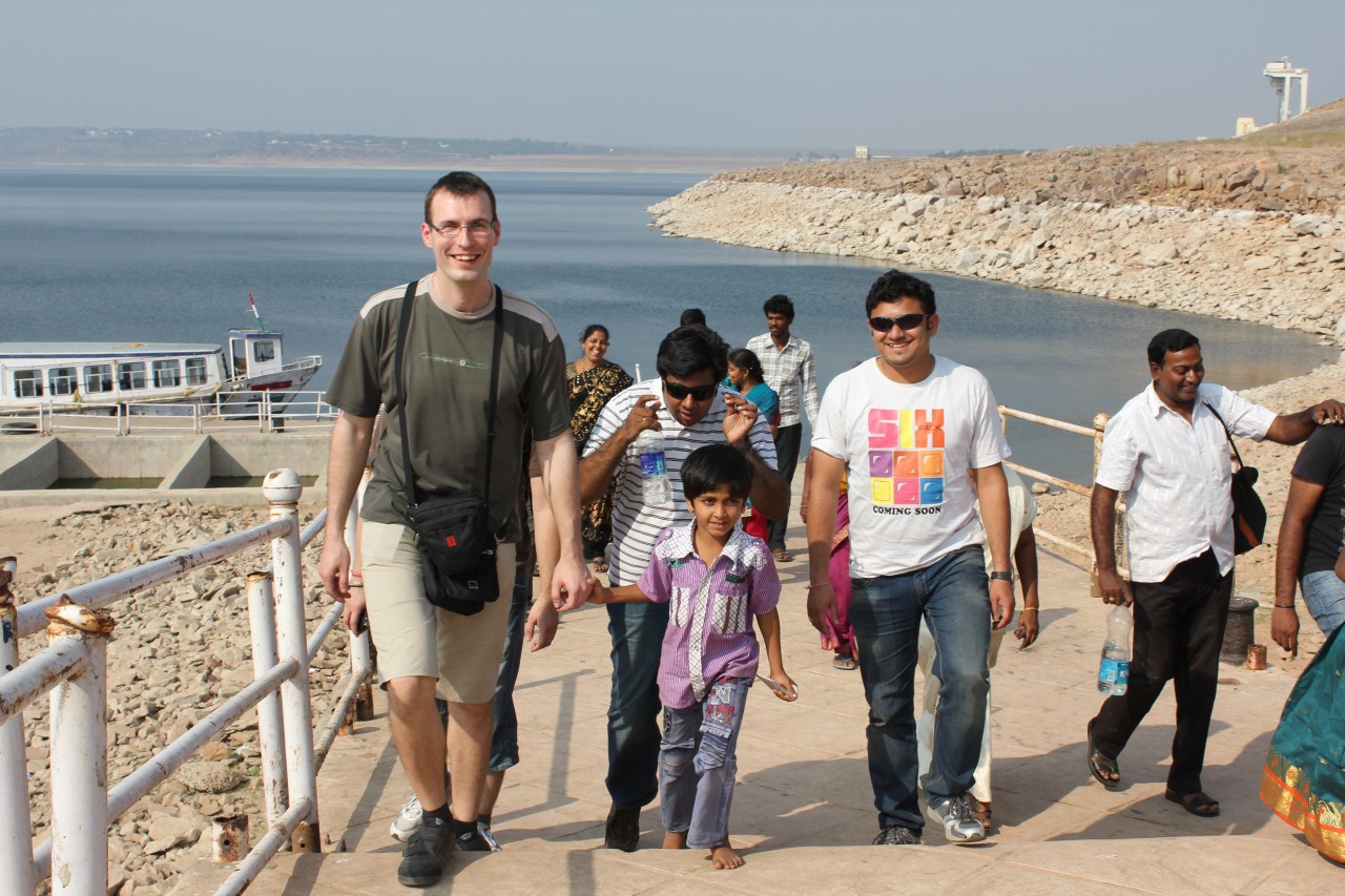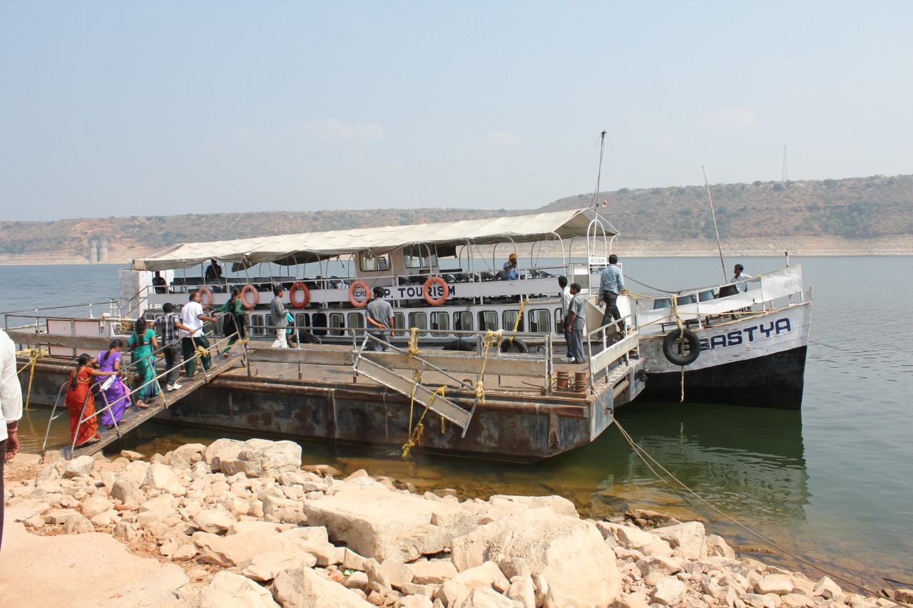 A szombati kirándulás úticélja a Hyderabadtól kb. 200 km-re keletre lévő duzzasztó gát és az azáltal létrehozott tó volt. Az esős évszakban nagyon látványos lehet amikor zúdul ki a víz a zsilipeken, de nekünk be kellett érnünk a sima fallal. A tó közepére egy szigetre gyűjtötték össze a mindenféle buddhista emlékeket az áradás elől, és itt több épületet rekonstruáltak – hát én kicsit másképp képzeltem el a rekonstrukciót, nagyobb látványosságra számítottam, főleg így Hampi után.