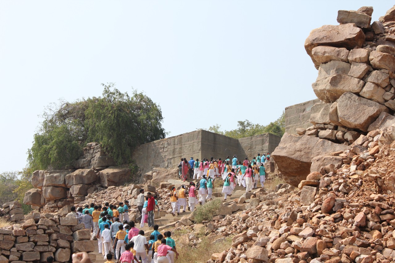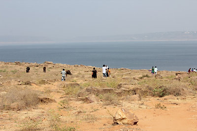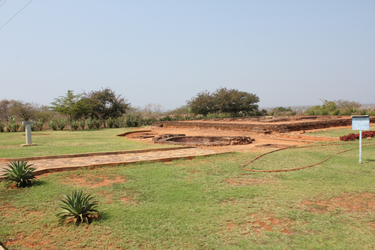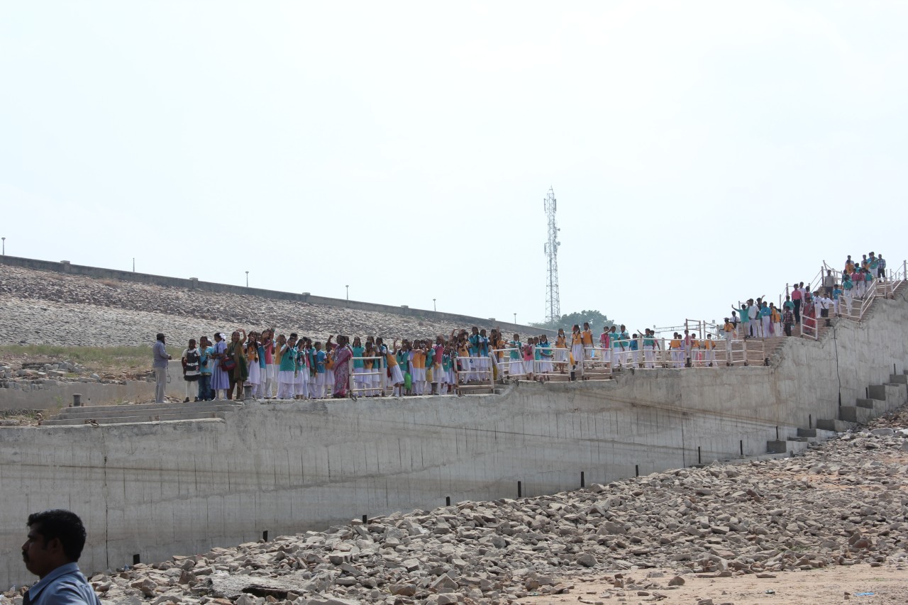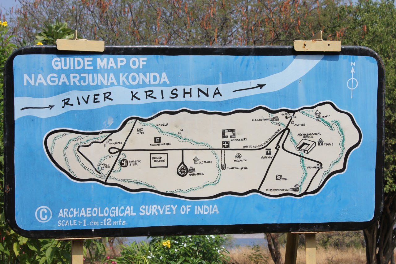 A szombati kirándulás úticélja a Hyderabadtól kb. 200 km-re keletre lévő duzzasztó gát és az azáltal létrehozott tó volt. Az esős évszakban nagyon látványos lehet amikor zúdul ki a víz a zsilipeken, de nekünk be kellett érnünk a sima fallal. A tó közepére egy szigetre gyűjtötték össze a mindenféle buddhista emlékeket az áradás elől, és itt több épületet rekonstruáltak – hát én kicsit másképp képzeltem el a rekonstrukciót, nagyobb látványosságra számítottam, főleg így Hampi után.