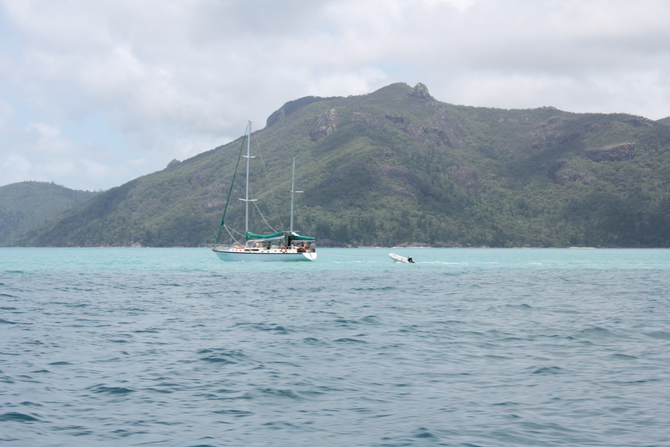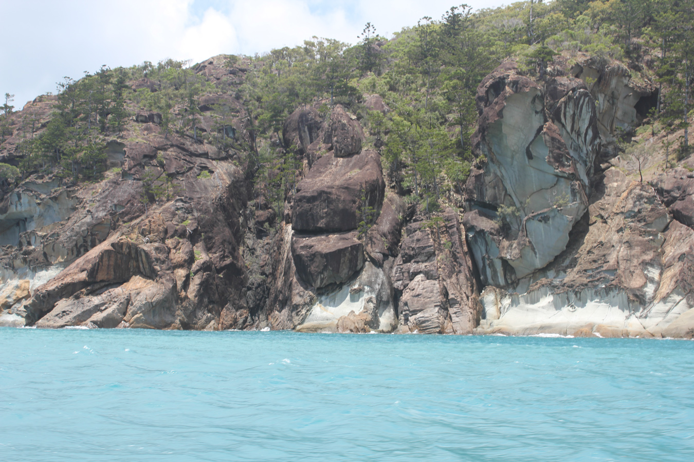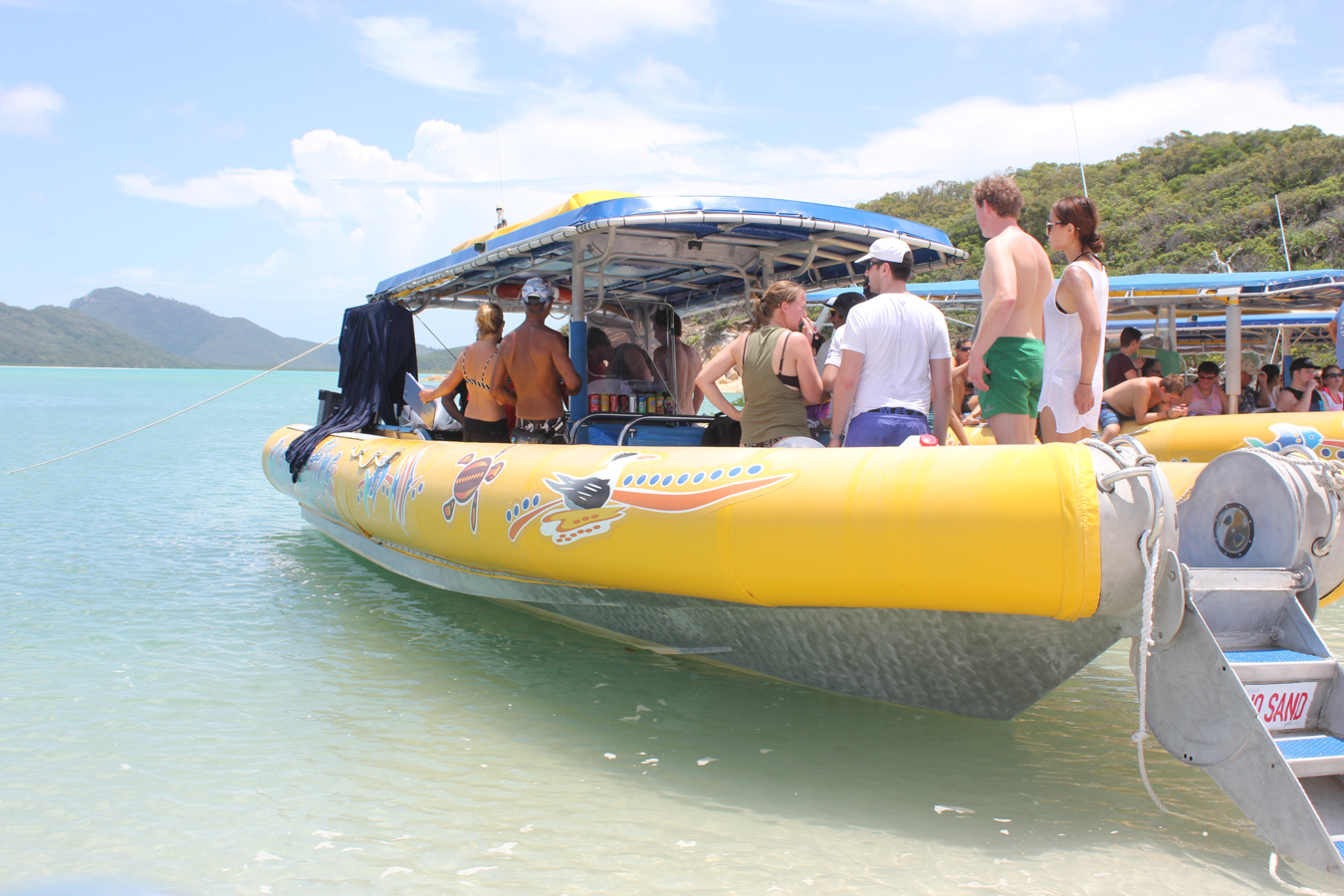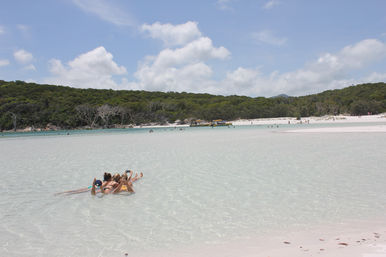 Az úszós részt a strandolós követte, a Hook szigetet elhagytuk és a Whitsundayen (a legnagyobb sziget) kikötöttünk a Hill Inlet Lookouthoz. Nagyon jó volt, hogy egy hátsó öbölből mentünk fel a kilátóba, így először fentről láttuk meg a Whitehaven Beachet és a hosszú keskeny öblöt. Nagyon tiszta kvarchomok az egész, így a homok egyáltalán nem volt meleg és jó volt a tapintása is. A parton ebédeltünk, majd több mint egy órát sétáltunk a sekély vízben. Egy csomó kis cápát láttunk (veszélytelenek), ráják is vannak, de sajnos abba nem botlottunk bele.