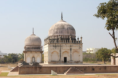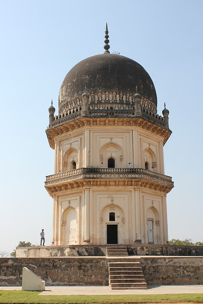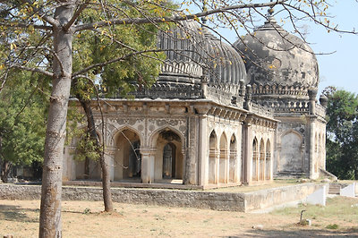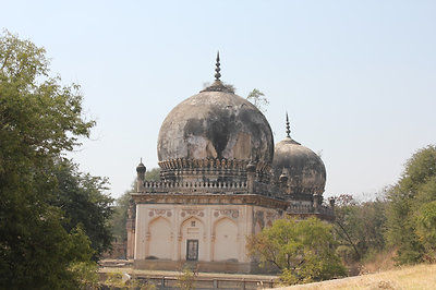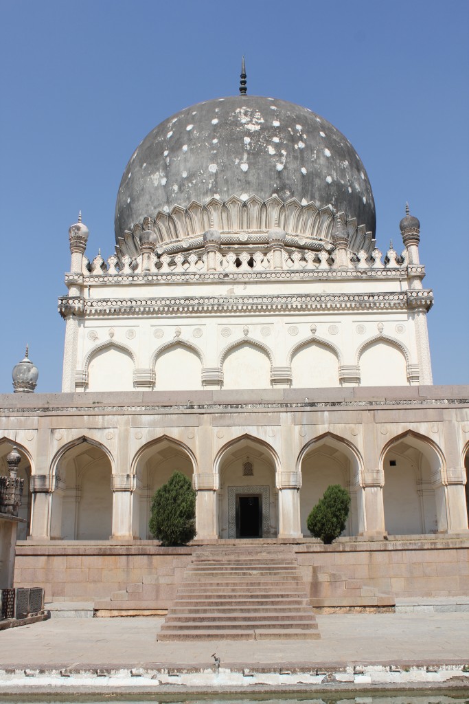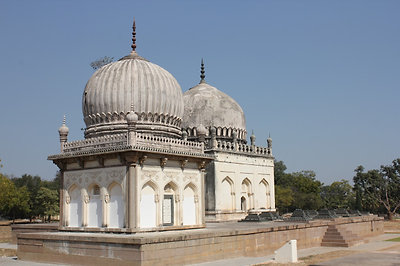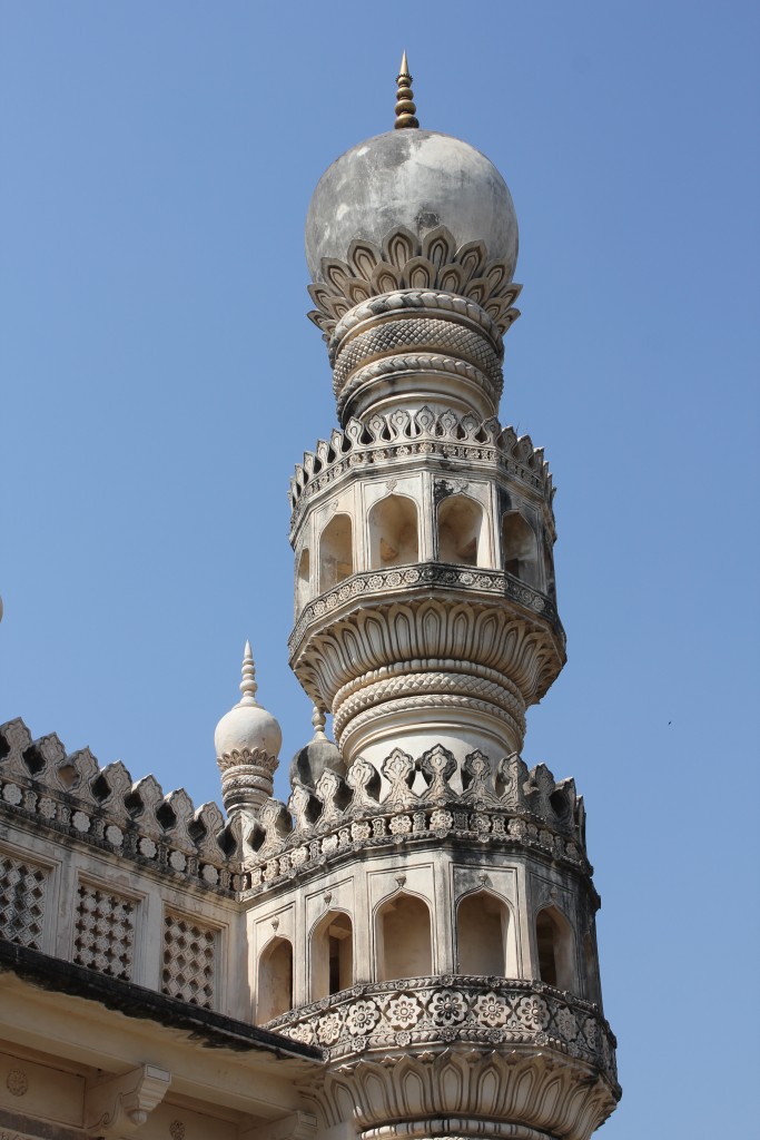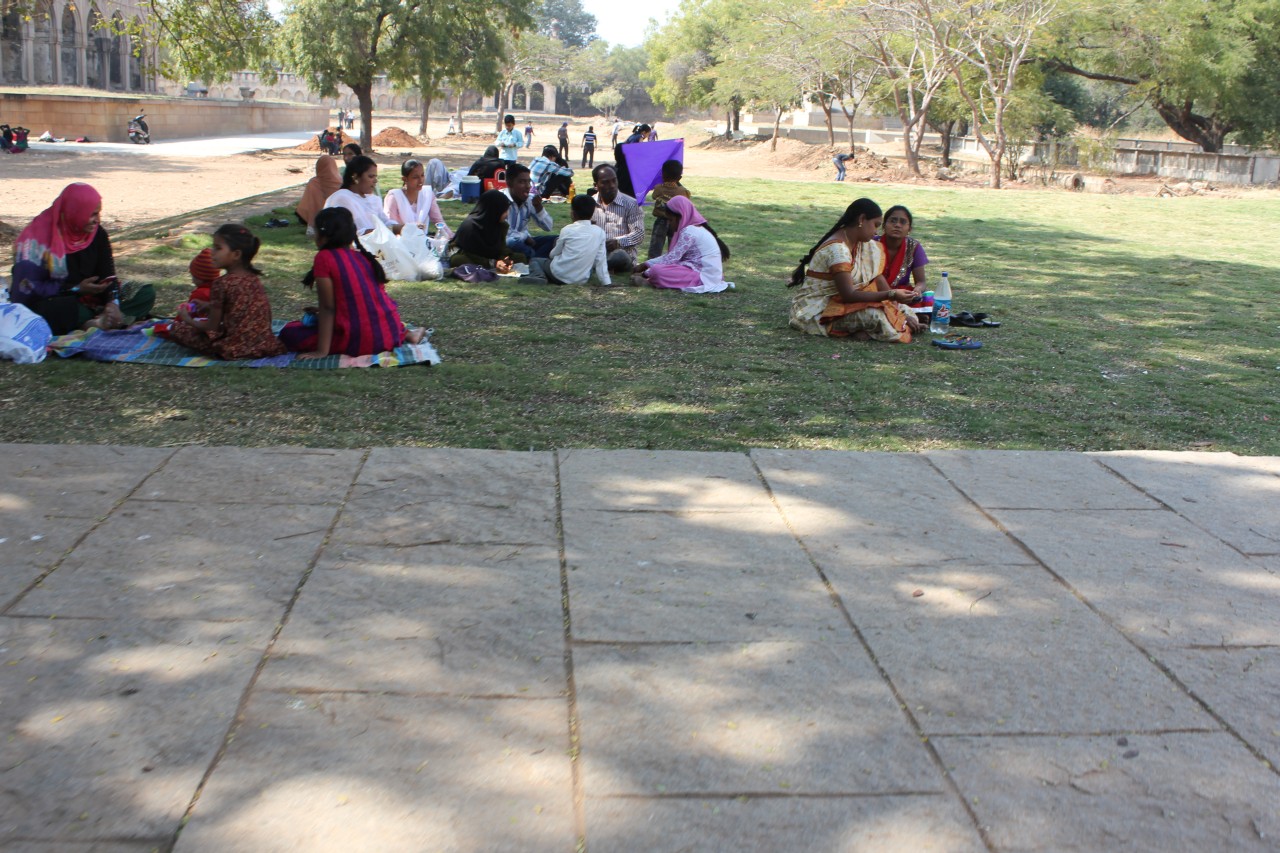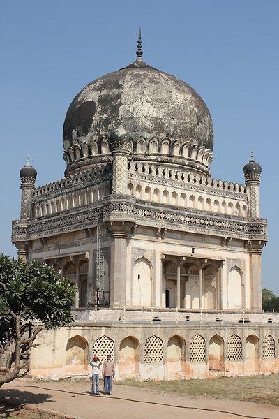 Aznap, amikor a Golconda erődnél jártunk még a Qutub Shahi dinasztia 7 generációjának síremlékeit is meglátogattuk. Ide nem volt külön külföldieknek szóló belépő, így mi is csak 30 rupit (120 Ft) fizettünk fejenként, ráadásul azért volt ilyen drága, mert fényképezni is akartunk! 🙂 Az épületek környéke nem volt túl rendezett, de legalább nem volt zajos és volt árnyék, így sok család piknikezett itt.