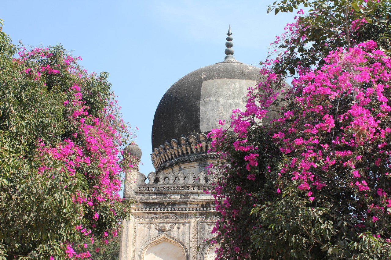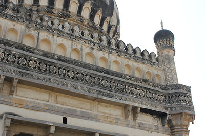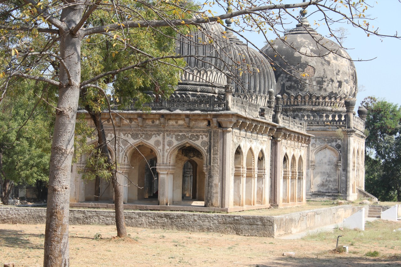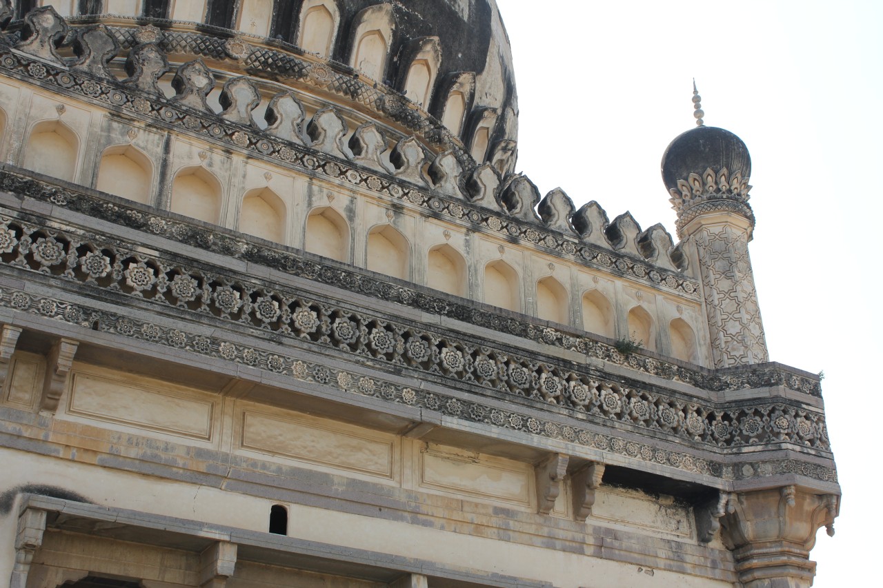 Aznap, amikor a Golconda erődnél jártunk még a Qutub Shahi dinasztia 7 generációjának síremlékeit is meglátogattuk. Ide nem volt külön külföldieknek szóló belépő, így mi is csak 30 rupit (120 Ft) fizettünk fejenként, ráadásul azért volt ilyen drága, mert fényképezni is akartunk! 🙂 Az épületek környéke nem volt túl rendezett, de legalább nem volt zajos és volt árnyék, így sok család piknikezett itt.