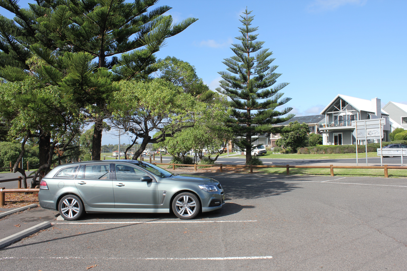 Rendben átvettük az autót, egy kombi Holden (Opel) VR6-ost. Ez egy ausztrál típus, otthon ne keressétek, hátsókerék hajtással és a kisebb motorral kaptuk. A kisebb motor egy 3.6-os V6-os 280 lóerővel 210 kilowattal :). Apropó, hogy gyorsan eloszlassunk pár kételyt Ausztrália SI mértékegységeket használ, sőt SIbb mint mi otthon! Itt már lóerő sincs csak kilowatt, de pl. kalória se, hanem minden kJ-ban van kiírva.