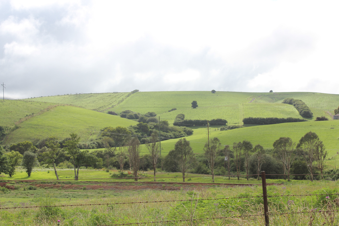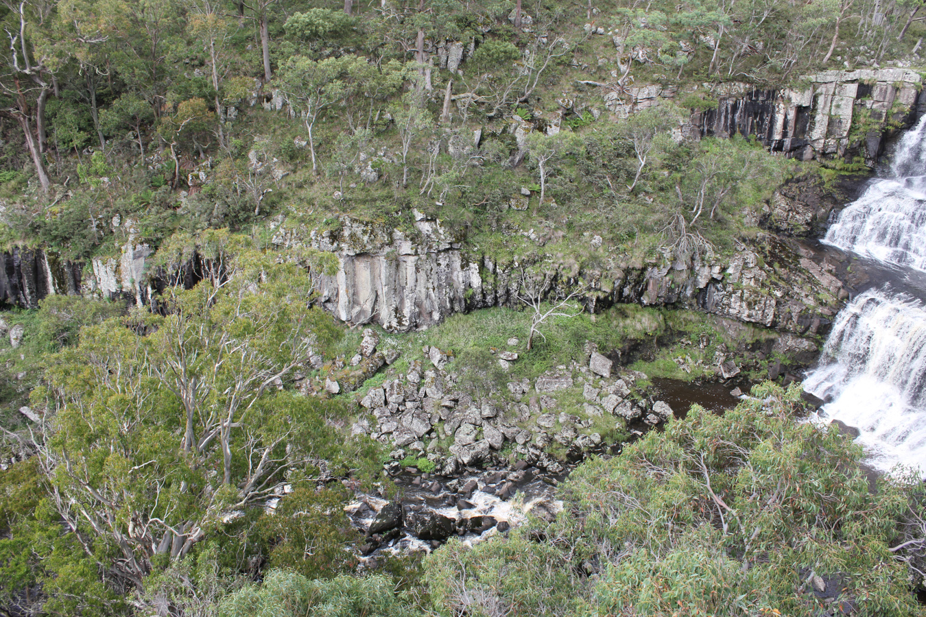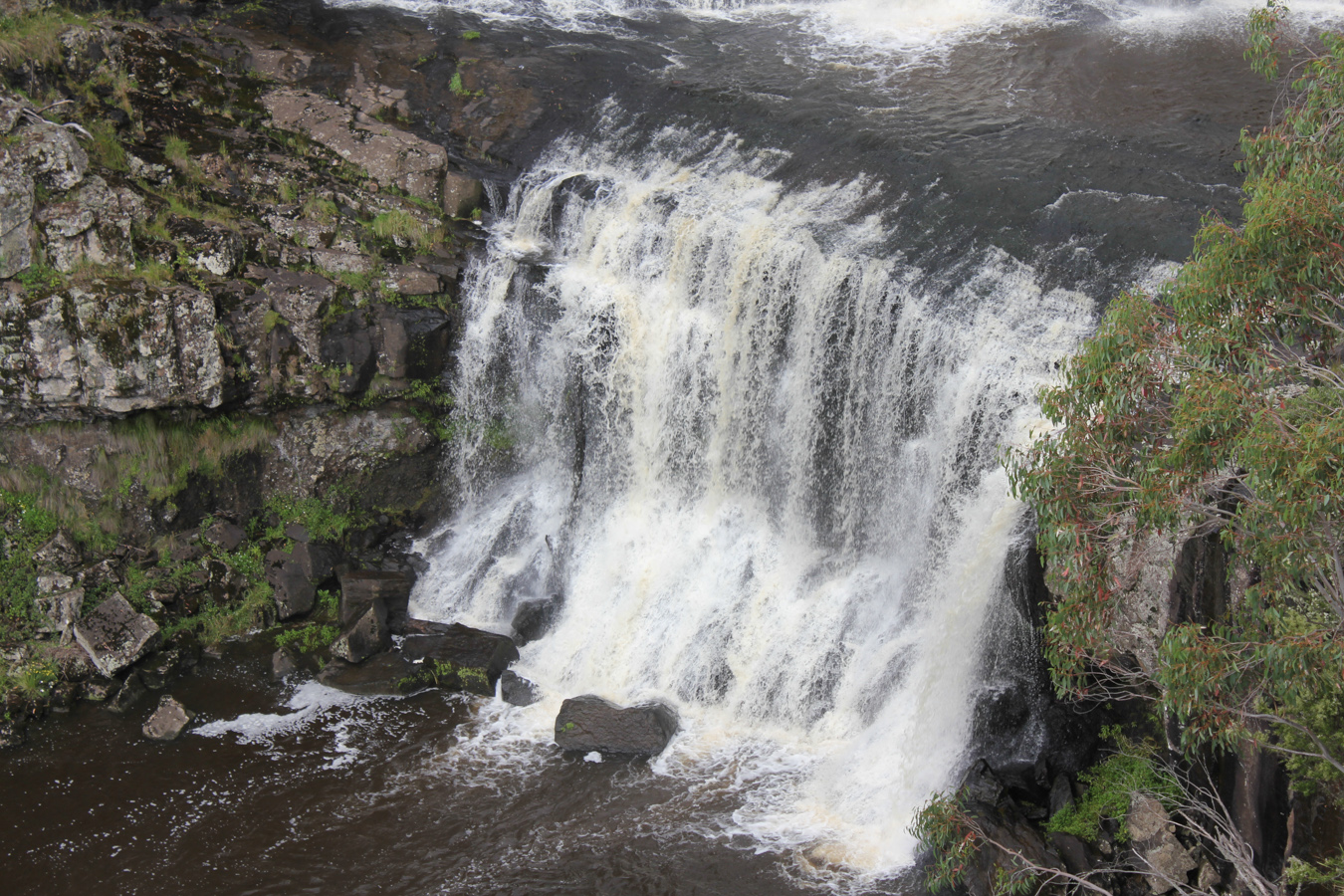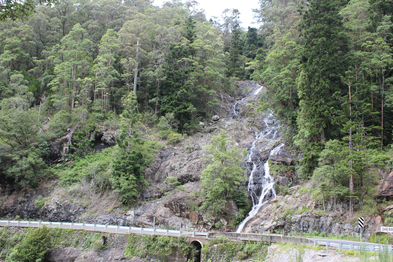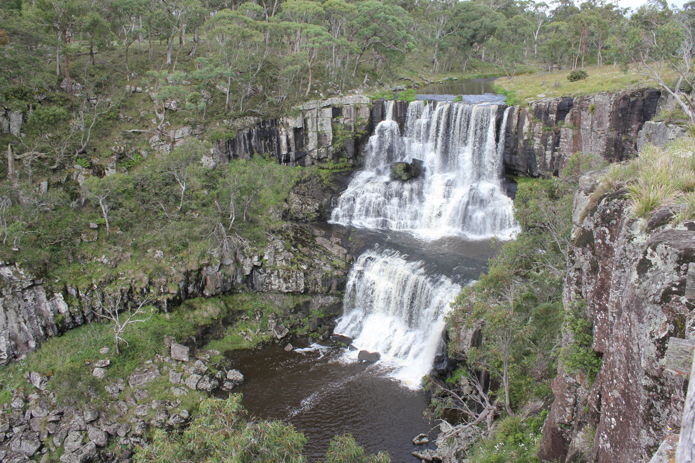 Ausztrália egyik legszebb autósturista útján jártunk, a Vízesések Útján. Otthagytuk a tengerparti esős időt és reménykedtünk benne, hogy a hegyek mögötti fennsíkon talán jobb idő lesz. Nem volt, az első kilátónál olyan köd fogadott, hogy 10m-re sem lehetett látni, nemhogy több kilométerre. Kicsit elkeseredve ugyan, de tovább autóztunk a turista úton, az Ebor vízesés felé. Arrafelé már szerencsére felszakadozott a felhőzet és láthattuk a marhákat legelni a dimbes-dombos tájon :).