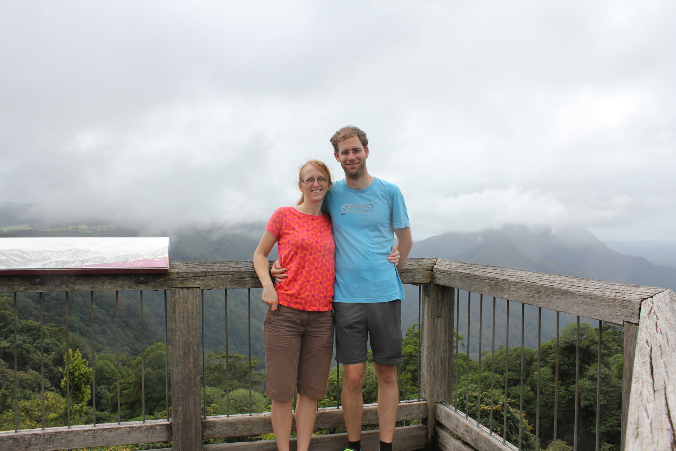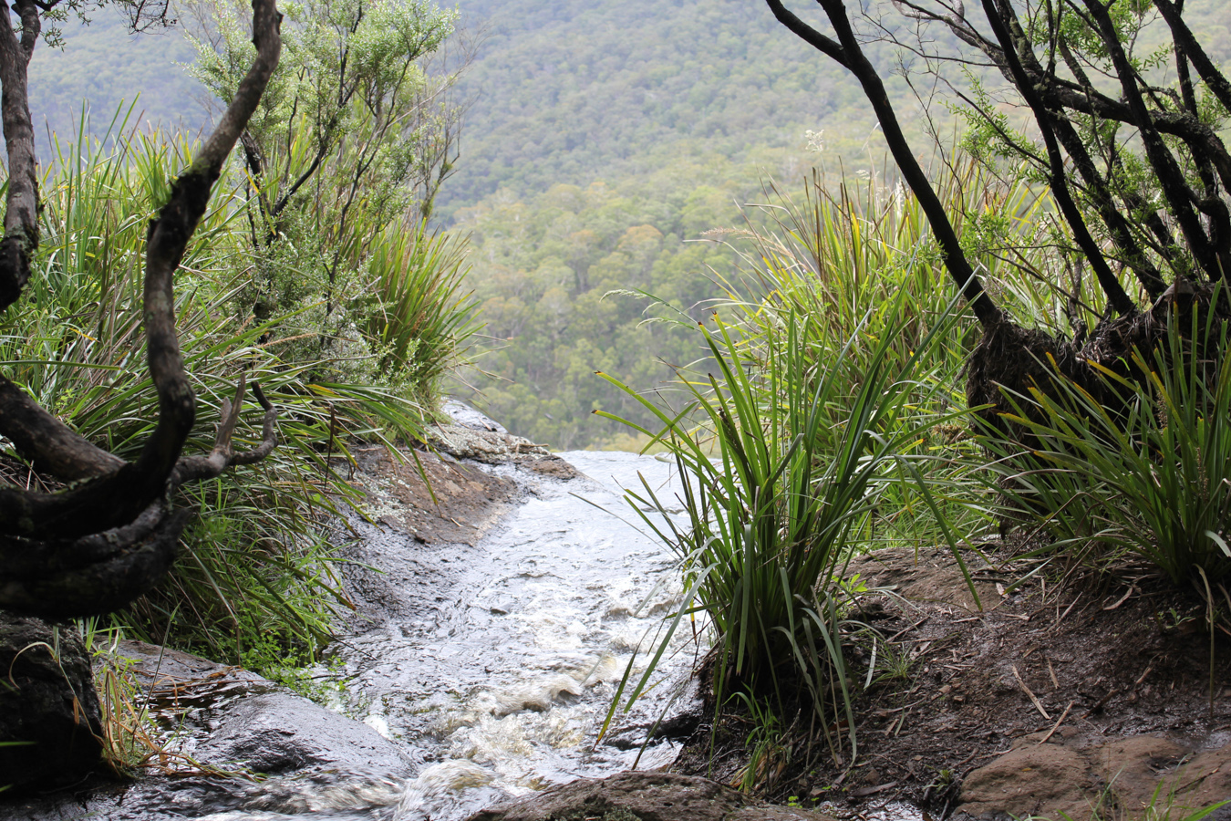 Másnap visszatértünk a ködös kilátónkhoz, ahonnan mostmár láttuk is a környéket! Innen indult egy sétaút az esőerdőn át, amely több kisebb vízesést is érintett. Maga az út volt igazán érdekes, mert a Dorrigo Nemzeti Park területén haladt, amely a világörökség részét képezi. Séta után tettünk egy második kört Bellingenben is, majd elindultunk tovább a part fele.